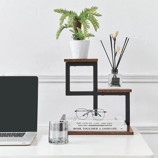 Gannyfer Wood Desktop Shelf - Freestanding Small Bookshelf Desk Supplies Organizers, 3 Tier Storage Display Rack Office Decor, Stand Shelves with Metal Frame for Books/Plants/Toys