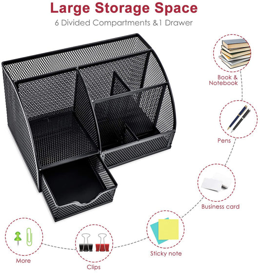 Multifunctional Office Accessories Mesh Office Supplies Desk Organizer Caddy with 6 Compartments for Home Office ,School
