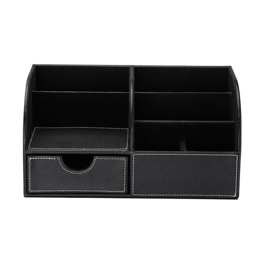 KINGFOM PU Leather Pen Holder Desktop Organizer for Pen/Mobile Phone/Remote Control