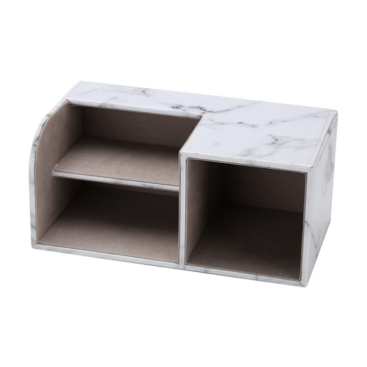 KINGFOM Pen Holder, PU Leather Desk Organizer Home School Office Stationery Storage Box , White Marble