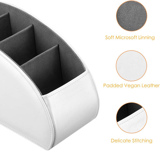 Fintie TV Remote Control Holder Desktop Organizer - PU Leather Storage Caddy with 5 Compartments Fits Office Supplies, Makeup Brush, White