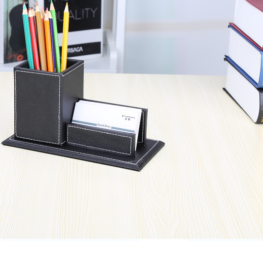 KINGFOM Business Card Holder, PU Leather Pen Holder Business Card Box Name Card Holder Office Organizer Desktop Organizer Black