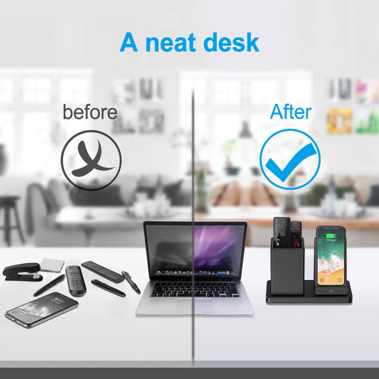 KINGFOM Wireless Charger with Desk Organizer, Pen Holder + Qi-Certified Wireless Charging Station for Apple iPhone 13/13 Pro Max/Samsung/Huawei/Xiaomi, Black