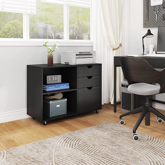 YITAHOME Wood File Cabinet, 2 Drawer Mobile Lateral File Cabinet Printer Stand with Open Storage Shelves
