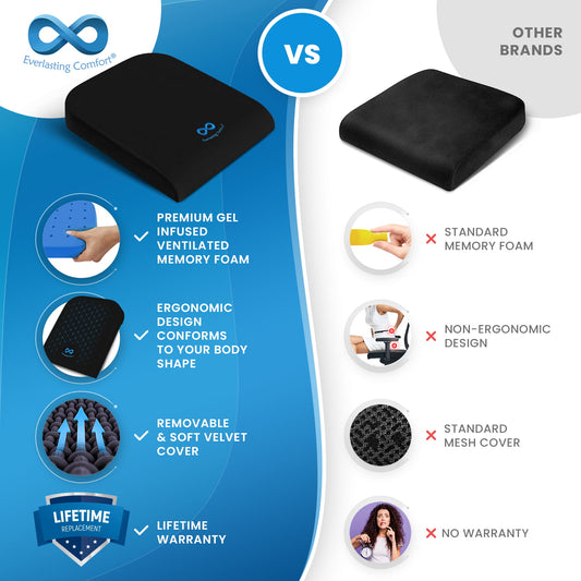 Everlasting Comfort Memory Foam Office Chair Cushion, Butt Pillow Seat Cushion Pad for Leg, Butt, Sciatica, and Back Pain Relief, Car, Work, Home, and Gaming Support, Desk Chair Cushion (Black)