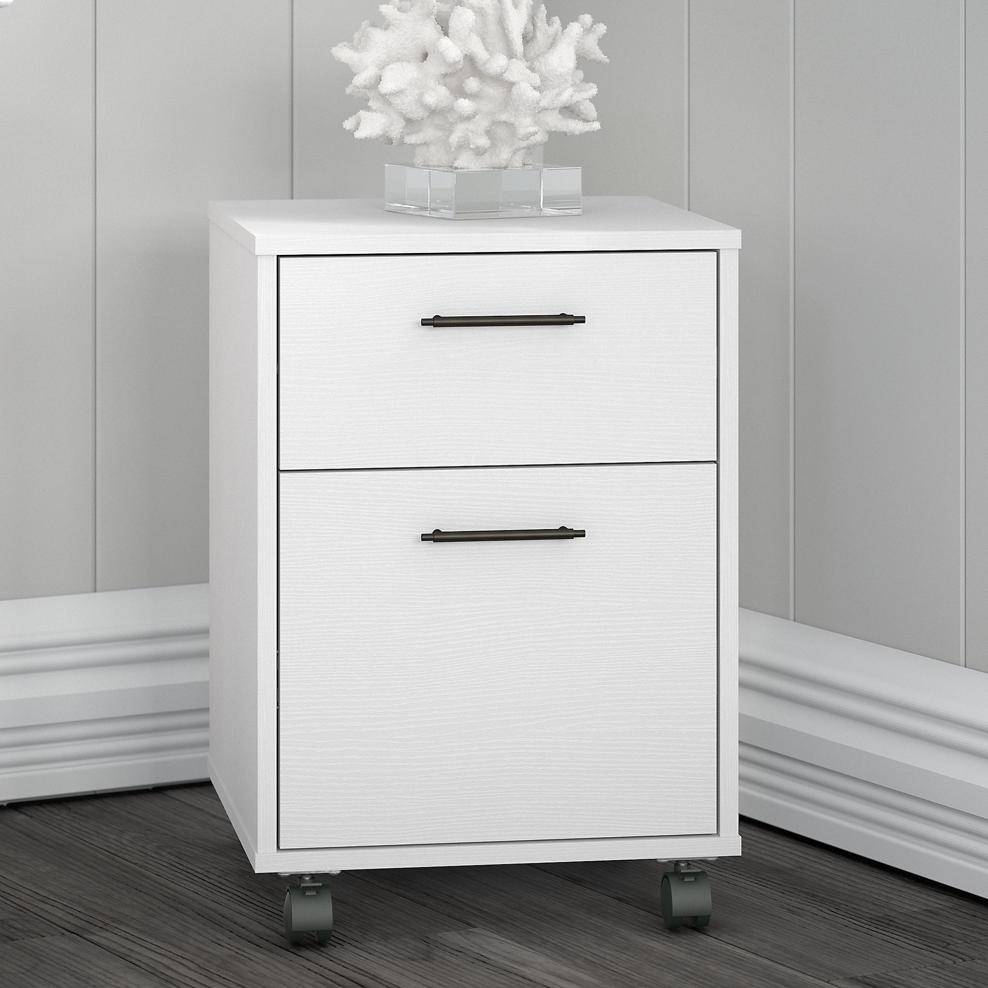 - Aged Bronze drawer pulls add to the 2 Drawer File Cabinet's relaxed style