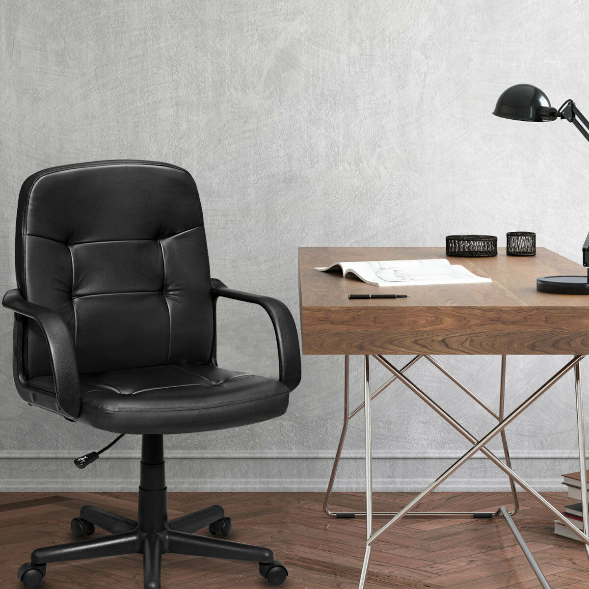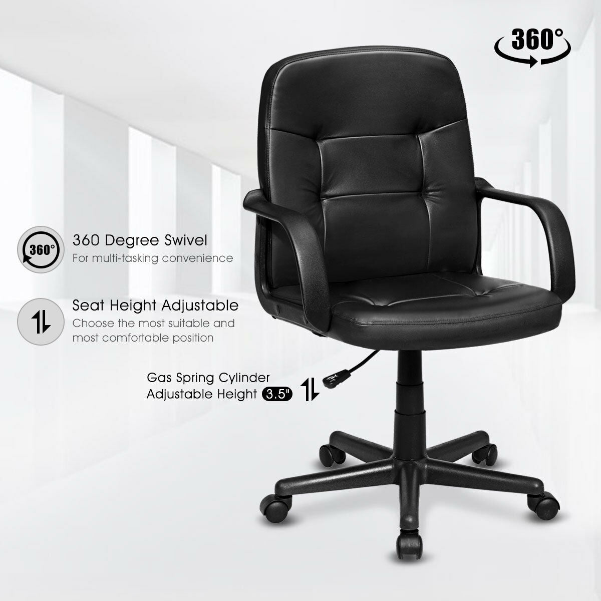 This is our brand new mid-back executive office chair which features sophisticated profile and exquisite workmanship to offer a modern and professional look for your home or office. The adjustable task chair helps promote a comfortable seated position by adjusting the seat height between 16''-19.5'', while it offers a versatile range of motion with 360 degree seat and durable casters for multi-tasking convenience. While maintaining ergonomic design, the cushion and backrest of the high-density sponge further enhance seat comfort. Refresh your office space with this office chair, a versatile choice for computer desks and workstations. Don't hesitate to buy it!
