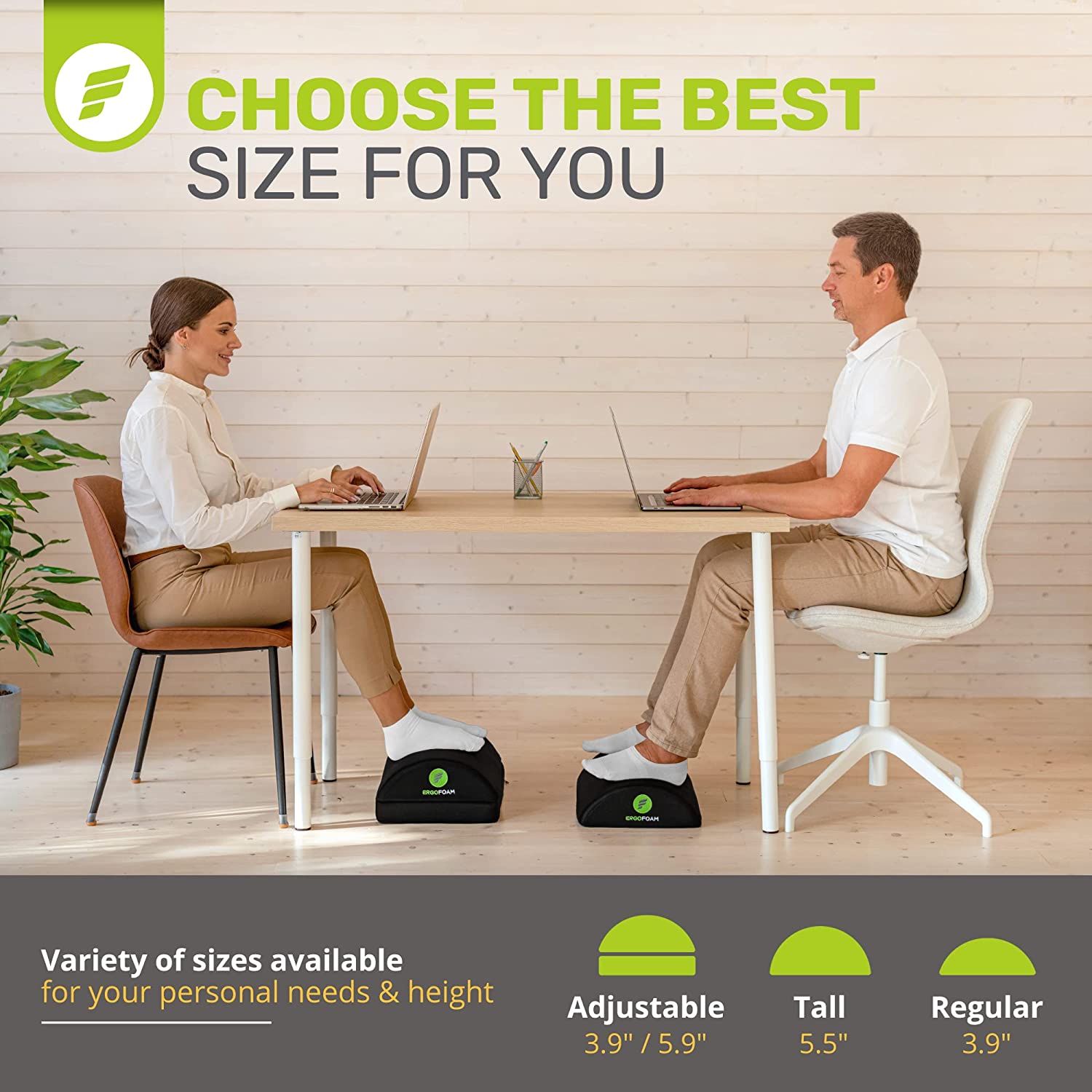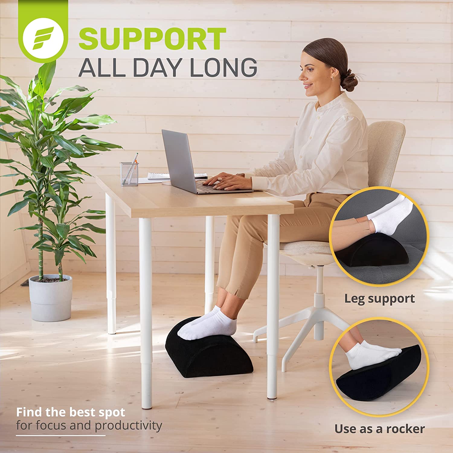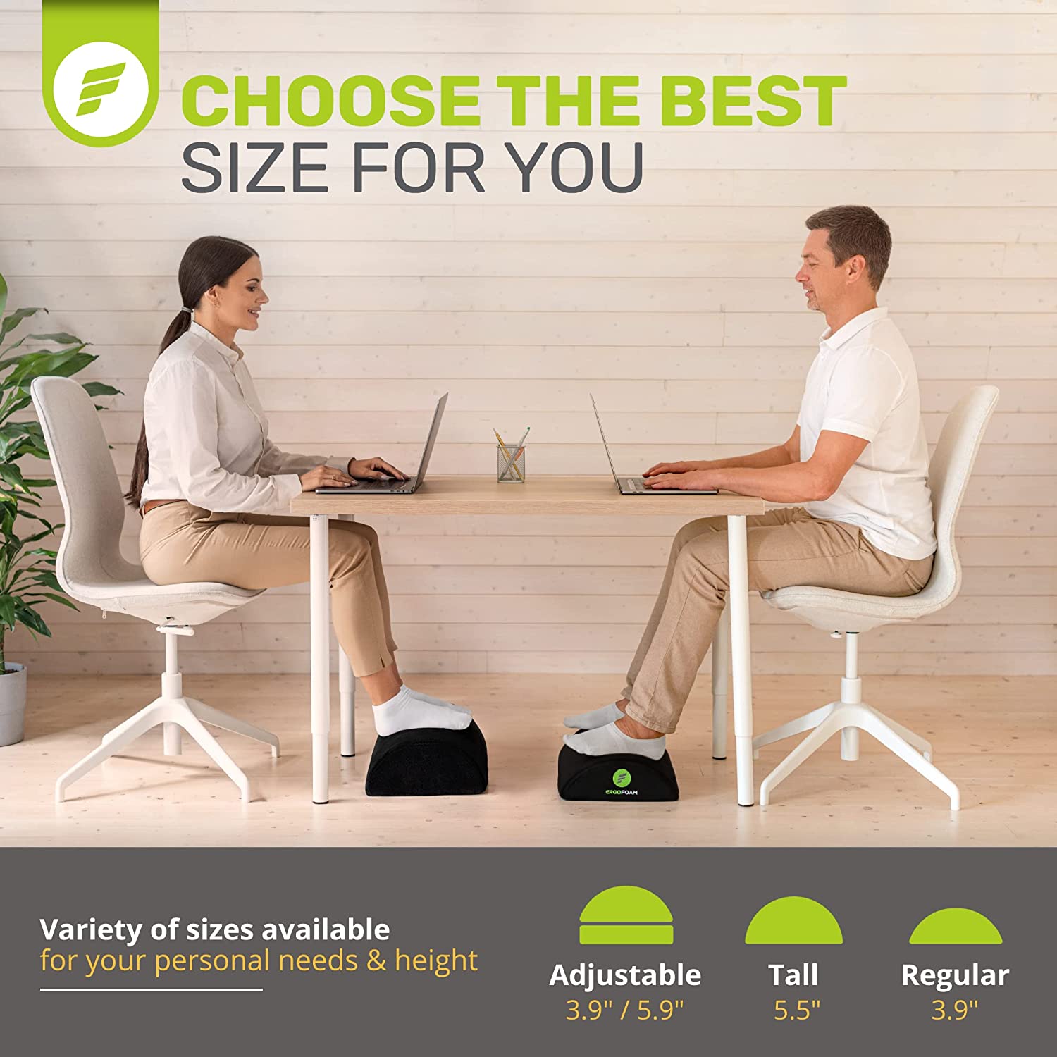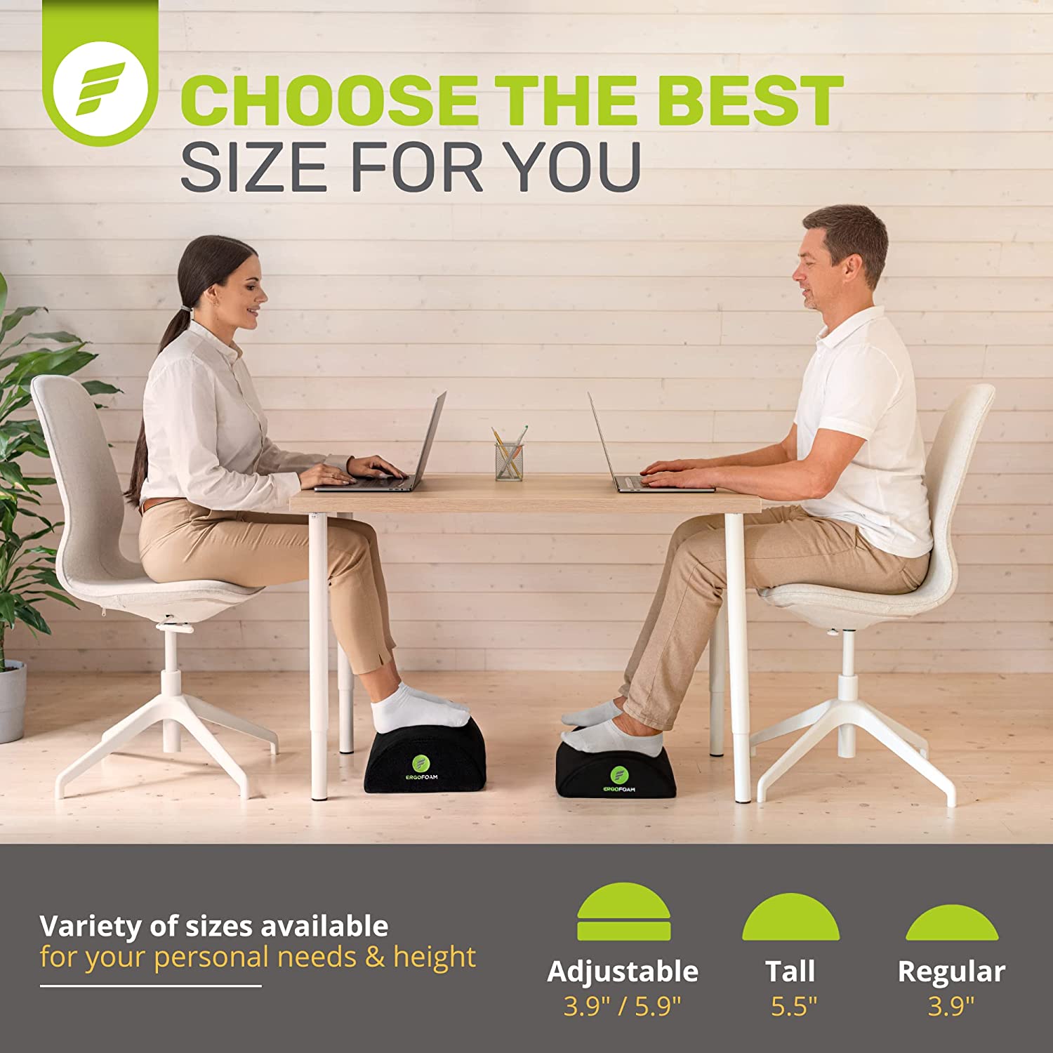 - Work From Home in Comfort - ErgoFoam's ergonomic desk foot rest provides firm support for your feet and helps ensure your sitting position is upright. Improving your posture has been proven to reduce soreness and fatigue to your back, feet, legs and knees, and will also improve circulation.