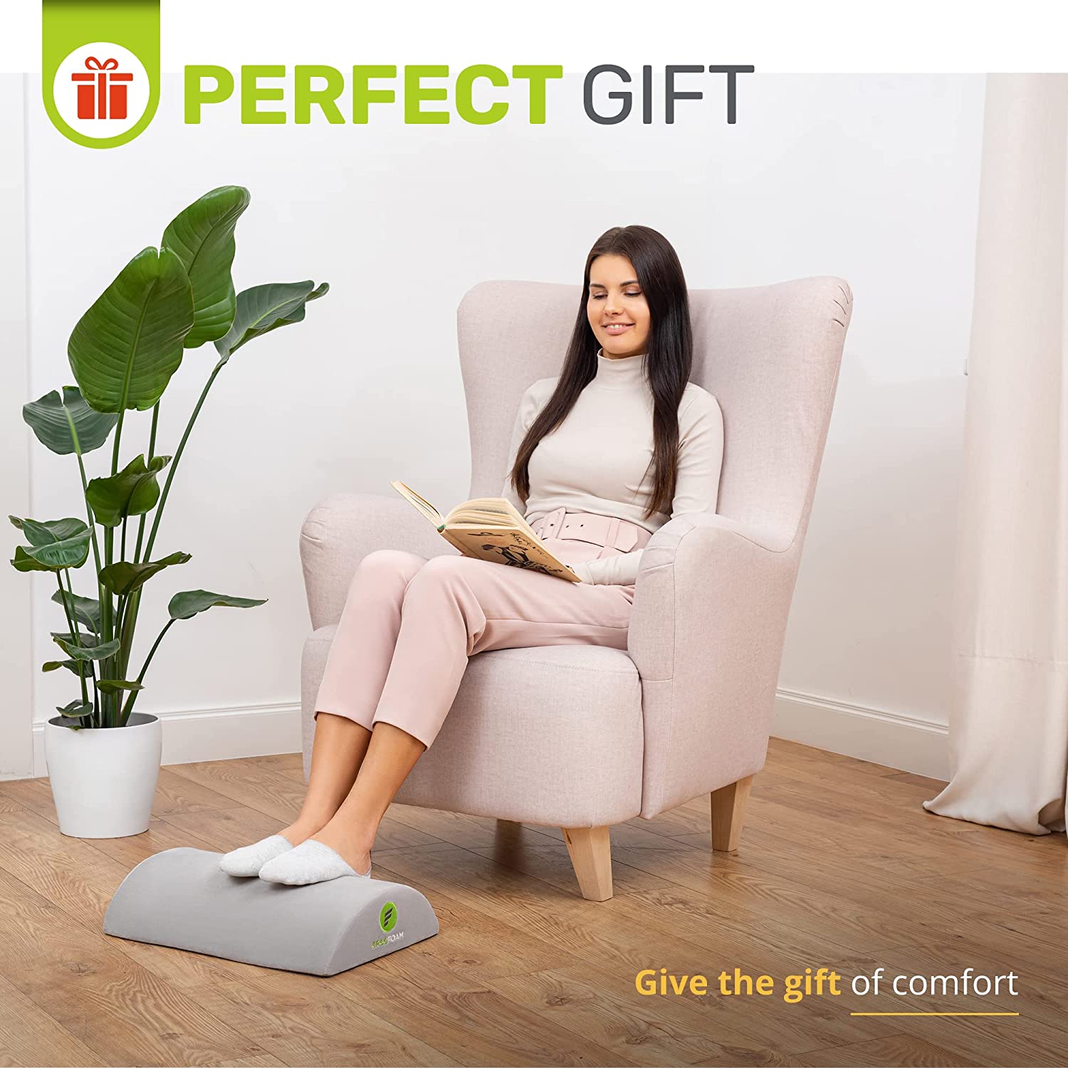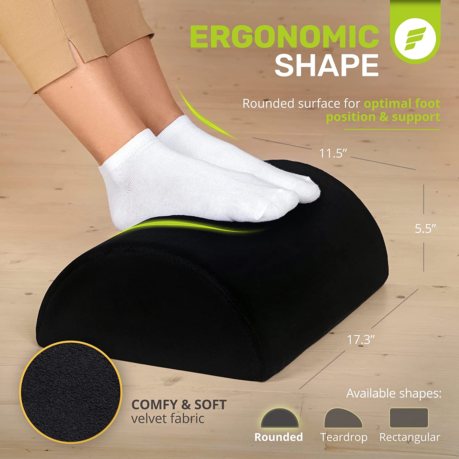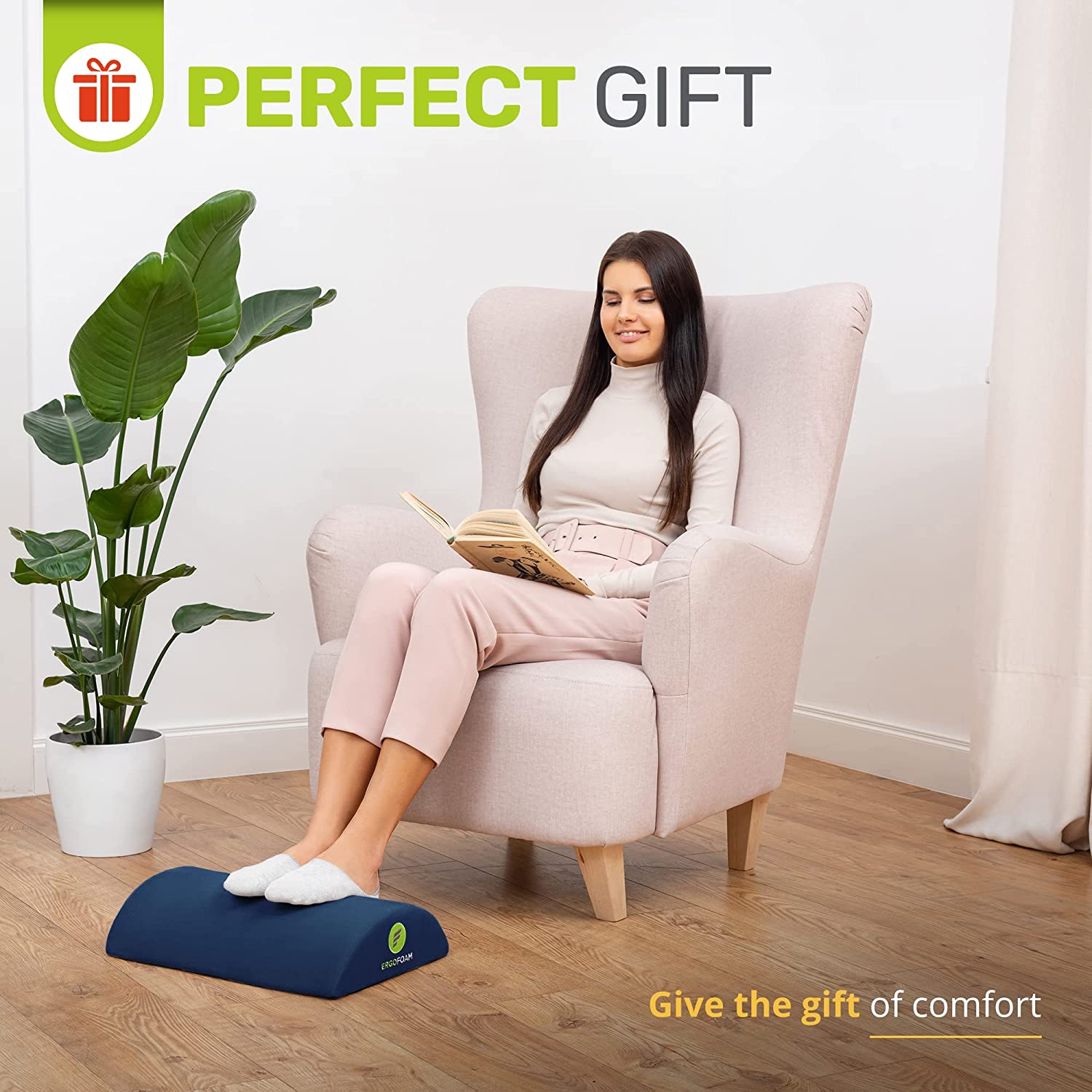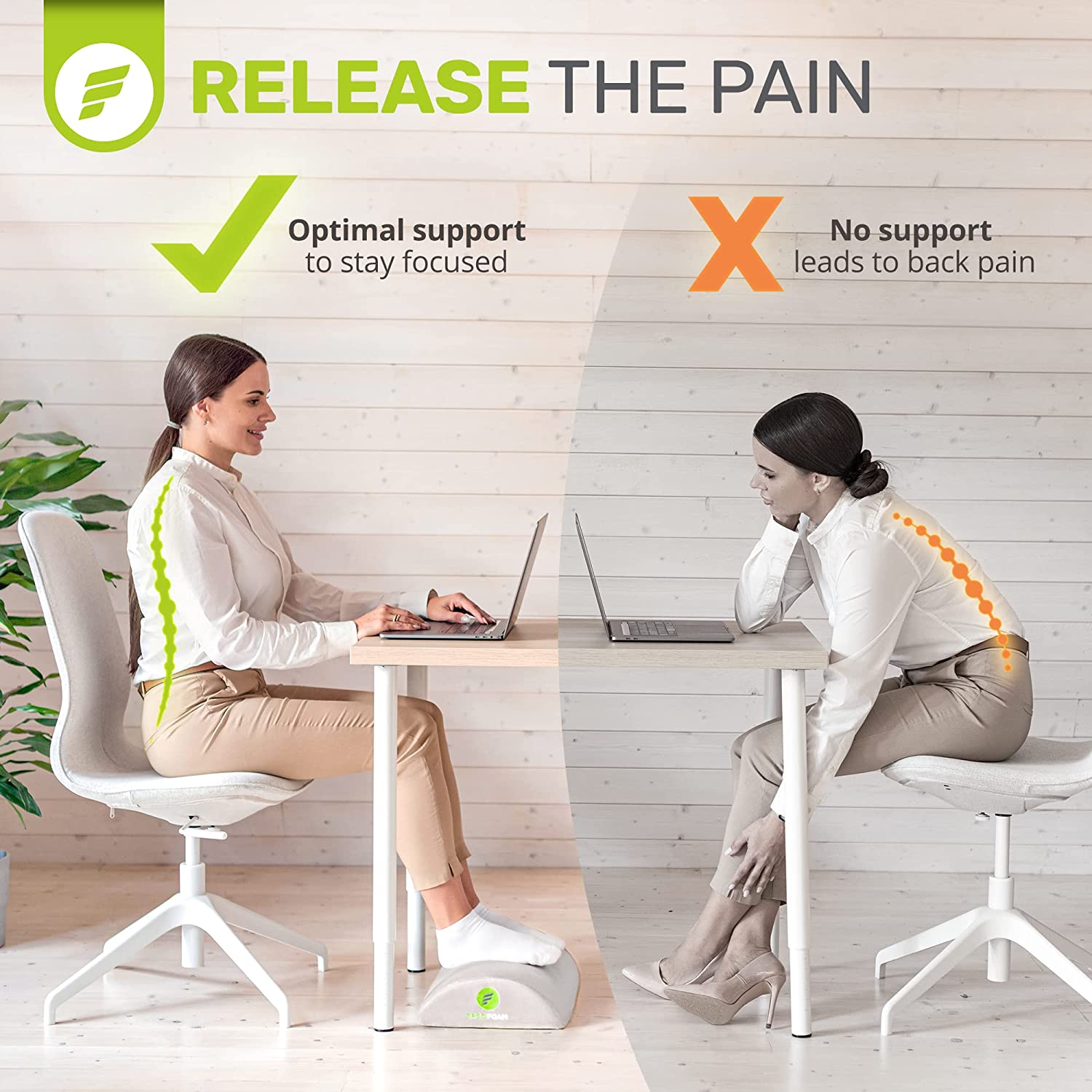- Work From Home in Comfort - ErgoFoam's ergonomic desk foot rest provides firm support for your feet and helps ensure your sitting position is upright. Improving your posture has been proven to reduce soreness and fatigue to your back, feet, legs and knees, and will also improve circulation.