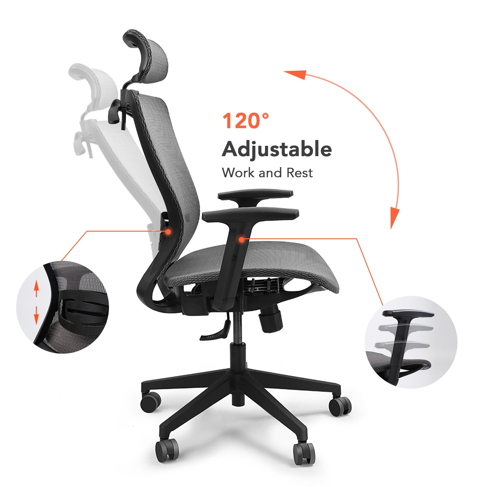 - Lock-in Tilt position: Four-level tilt tension lockable line control mechanism give you more choice to tilt the chair when we want to rest yourself.The recline function makes you tilt the backrest back (90~130°) or sit straight freely.The office chair is larger than other chairs, and it could accommodate different body build.