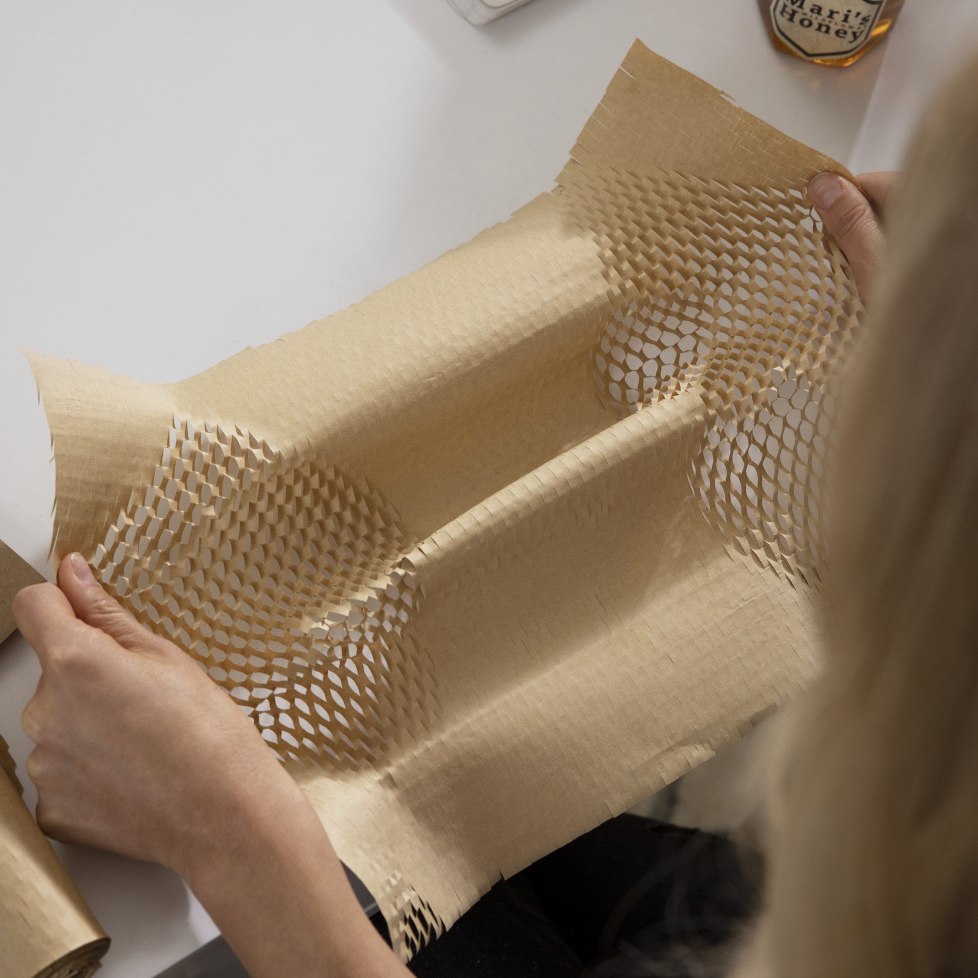 Sustainable honeycomb cushion wrap made with 40% recycled content that's a great alternative to traditional plastic bubble cushioning