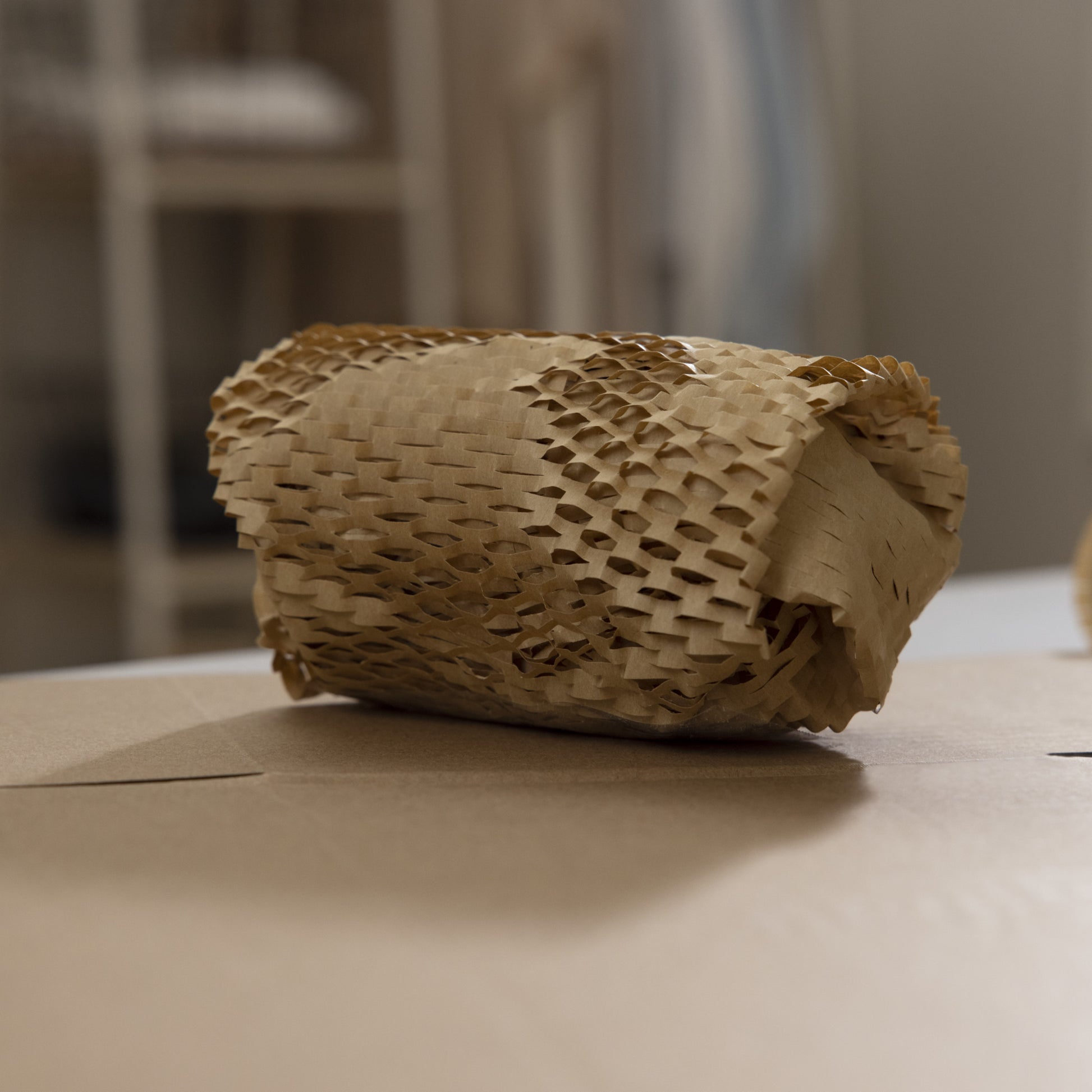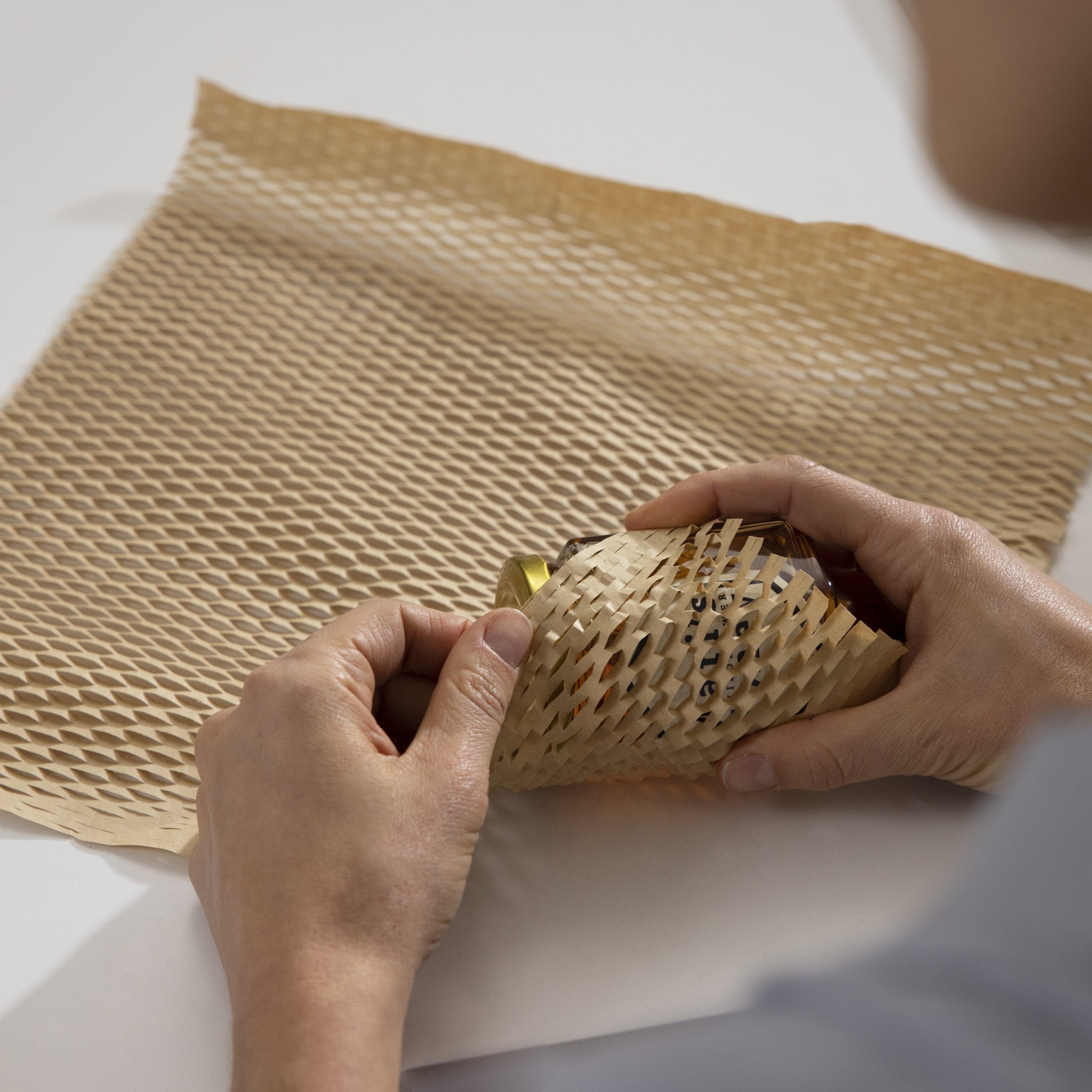 - Sustainable honeycomb cushion wrap made with 40% recycled content that's a great alternative to traditional plastic bubble cushioning