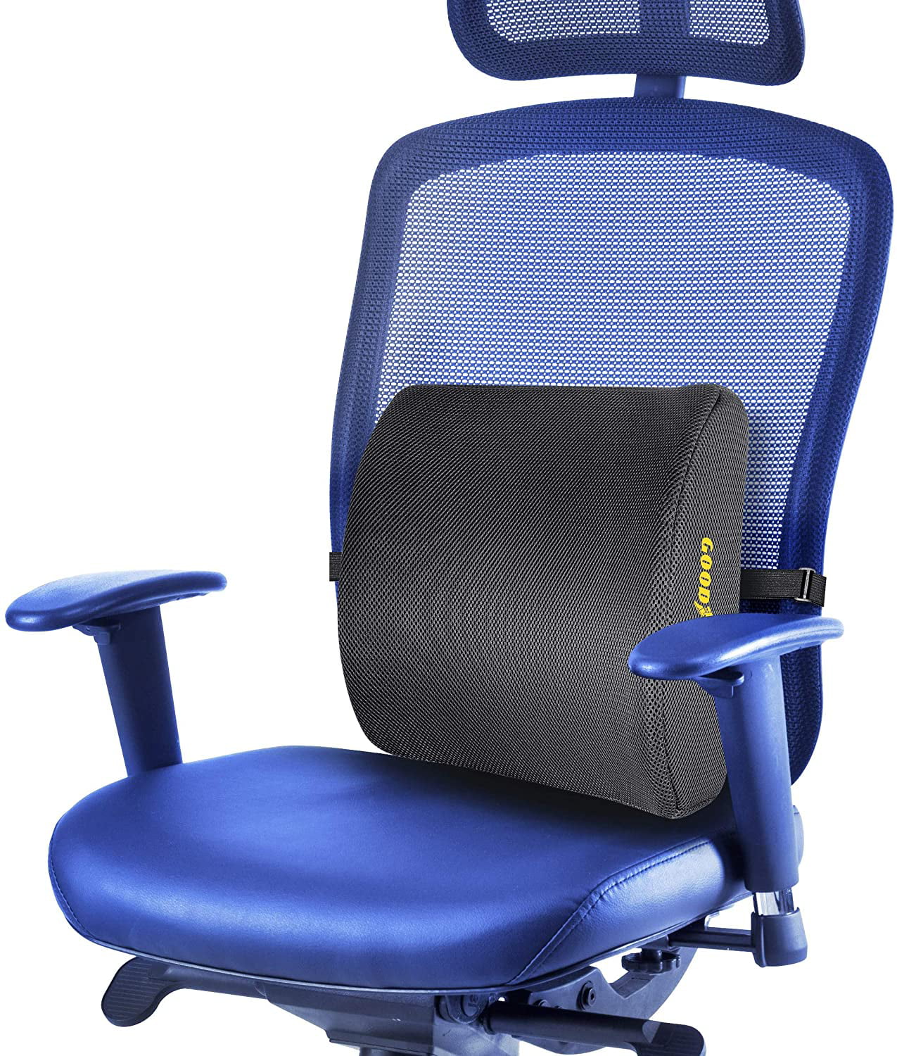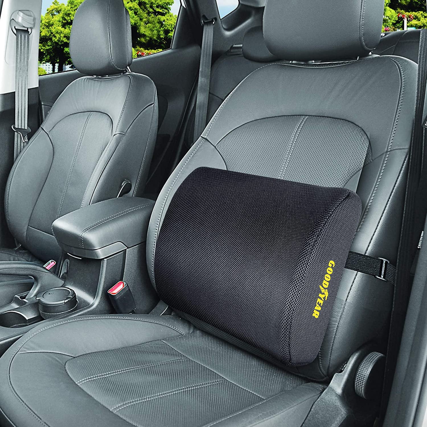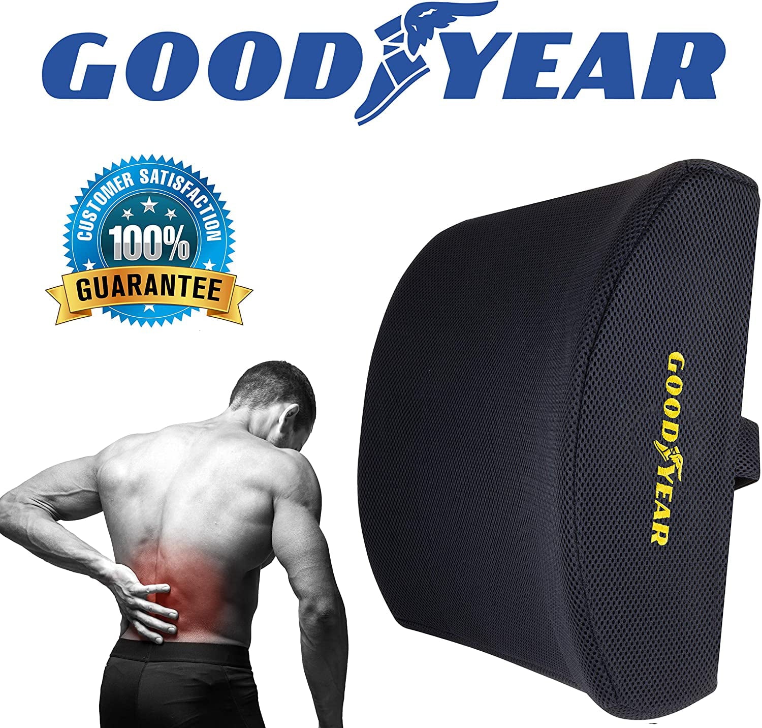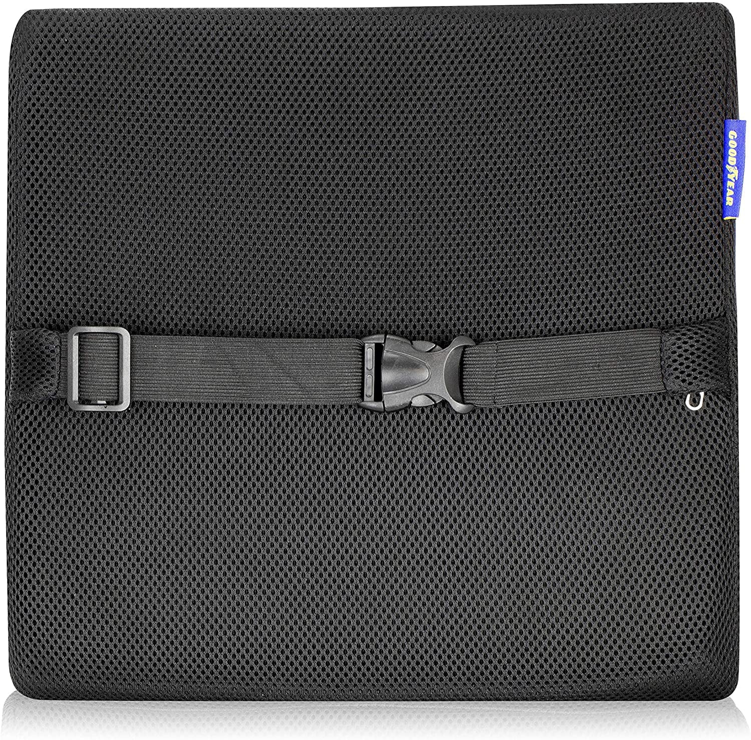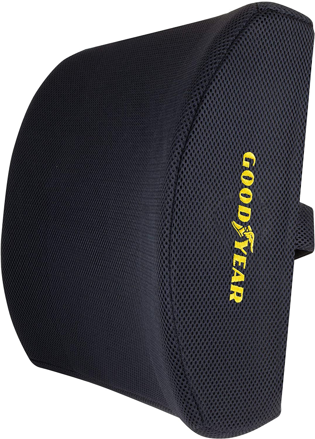 Hit the road in endless comfort with the Memory Foam Lumbar Support Cushion from Goodyear! This cushion is made of the highest-grade memory foam available. The foam adjusts to hug the curvatures of your lower back to offer you long-lasting stress and tension relief without you needing to constantly reposition yourself or your cushion. This cushion is engineered with a contoured design that aligns strongly with the natural shapes, curvatures, and arches of the lower back. Its optimized structure enables it to achieve long-lasting stress and tension relief on even the bumpiest of rides. This is no ordinary rectangular cushion -- with this cushion, the shape is the secret. A back strap lets you use this cushion in pretty much any vehicle imaginable -- perhaps even a bus! -- because you can shorten or lengthen the strap at a moment’s notice. Once this cushion is securely fashioned to a vehicle seat, it stays there. For road trips and daily commutes, rough roads and smooth streets, speedy journeys or slow travels, this cushion fits all. A removable cover with ventilated mesh keeps both you and your cushion dry and clean. The ventilated mesh wicks moisture away from your lower back, keeping you sweat-free as you sit squarely against your cushion for hours at a time. Hot air escapes and makes its way away from you. Remove the cover and include it in your next laundry run to keep your cushion looking new and clean, and simply return the cover to the foam once dry. It’s never been this easy to clean your cushion and fend off pain during even the longest of car rides. ● Dimensions: 13. 5” x 14” x 4. 5”●