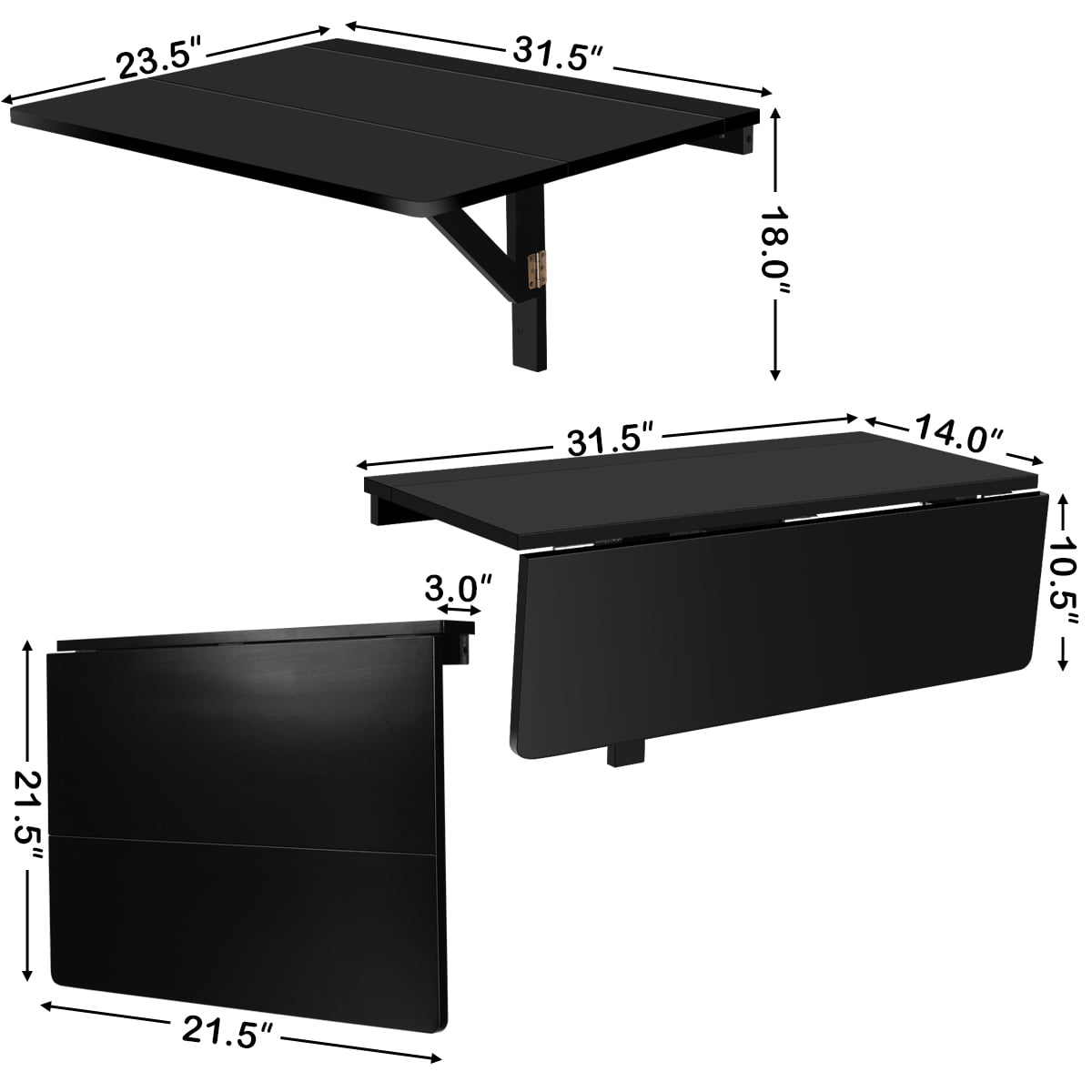 This folding table is perfect for small apartments, tiny living and minimalist aesthetics for its modular design; the sleek black finish will flawlessly blend into any existing home decor. 2 ways of folding design provides extra space, Put it up when you're ready to eat, compute, write, draw, paint, etc. And in daily ,the table can be folded in half as a storage shelf or fold flat to save you valuable space. This drop leaf table folds out fast and folds flat against wall easily. Great for use in kitchen, offices, hallway, or any places that may need additional display spaces some time. So, don't hesitate to buy one!