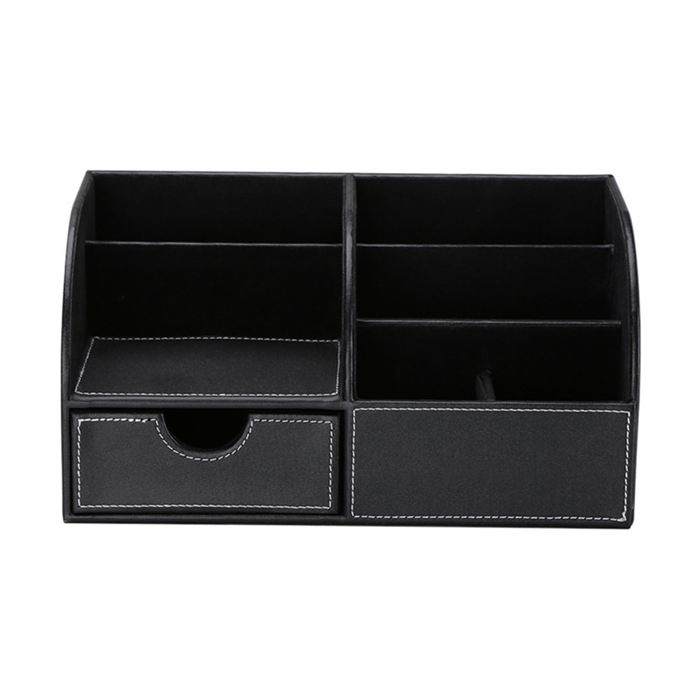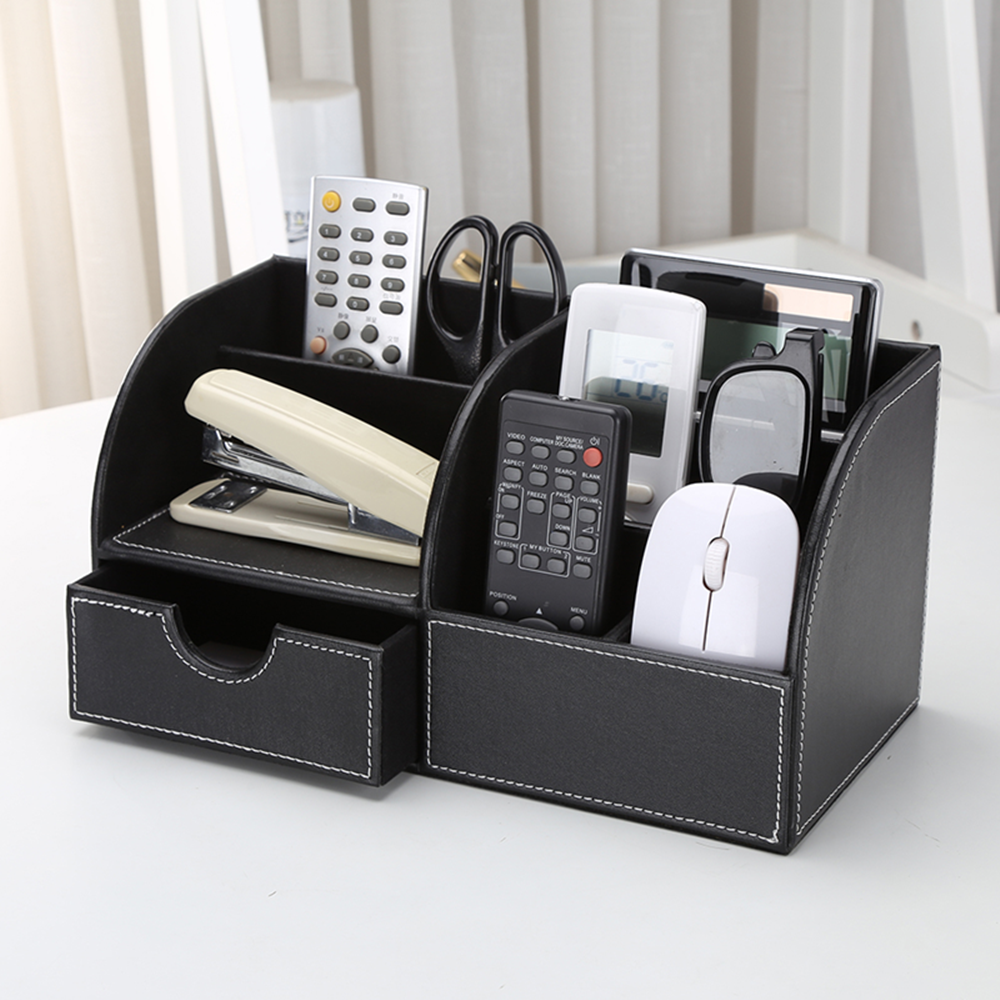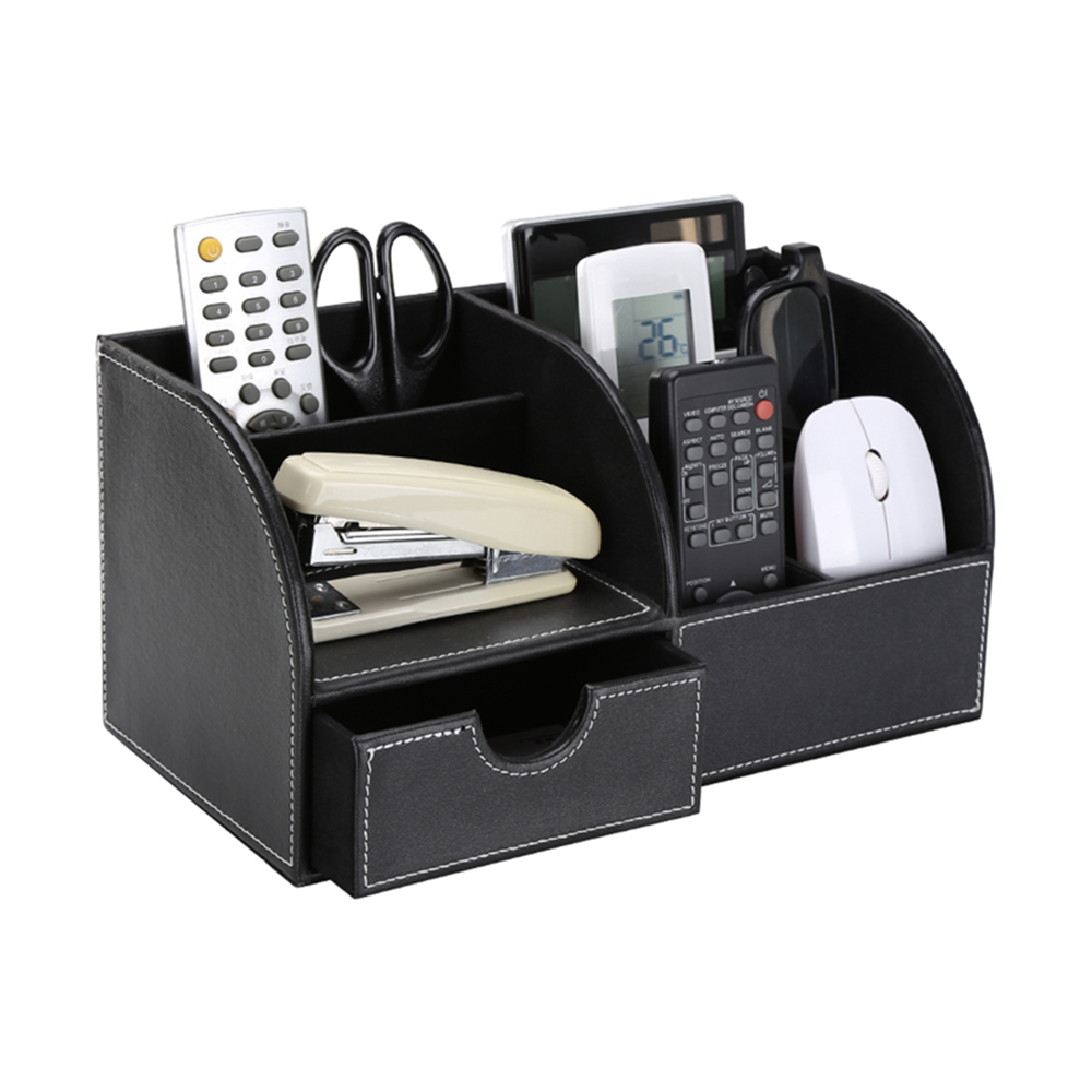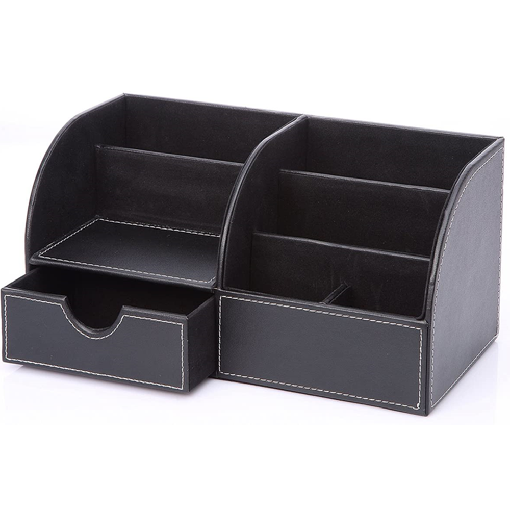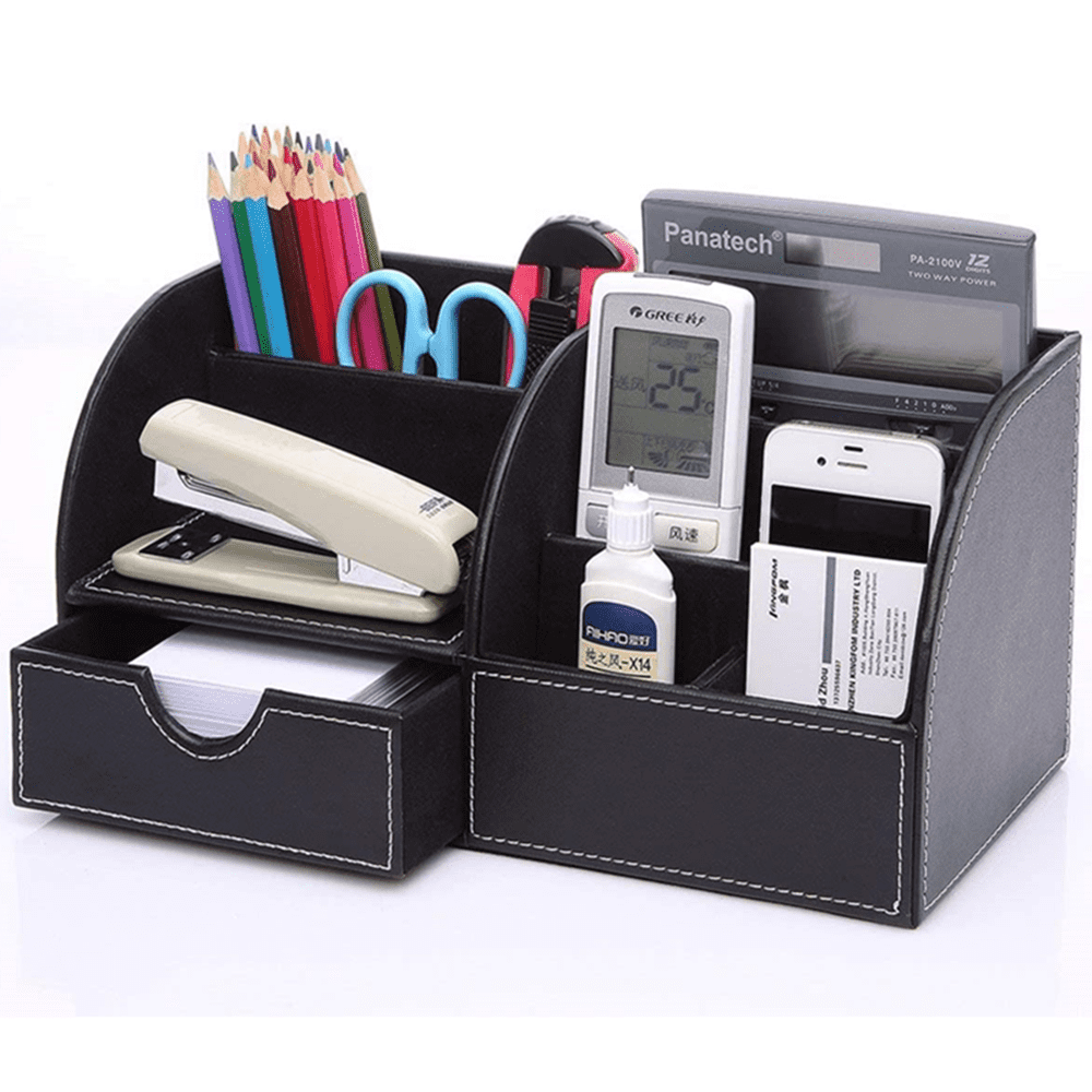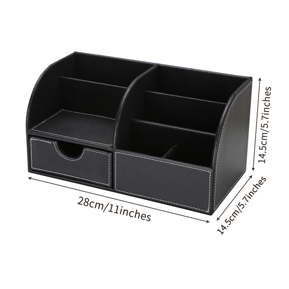 - 6 divided compartments and a small drawer to organize all your office home supplies, pen/pencil, scissors, remote control , cell phone and cards or other small supplies.