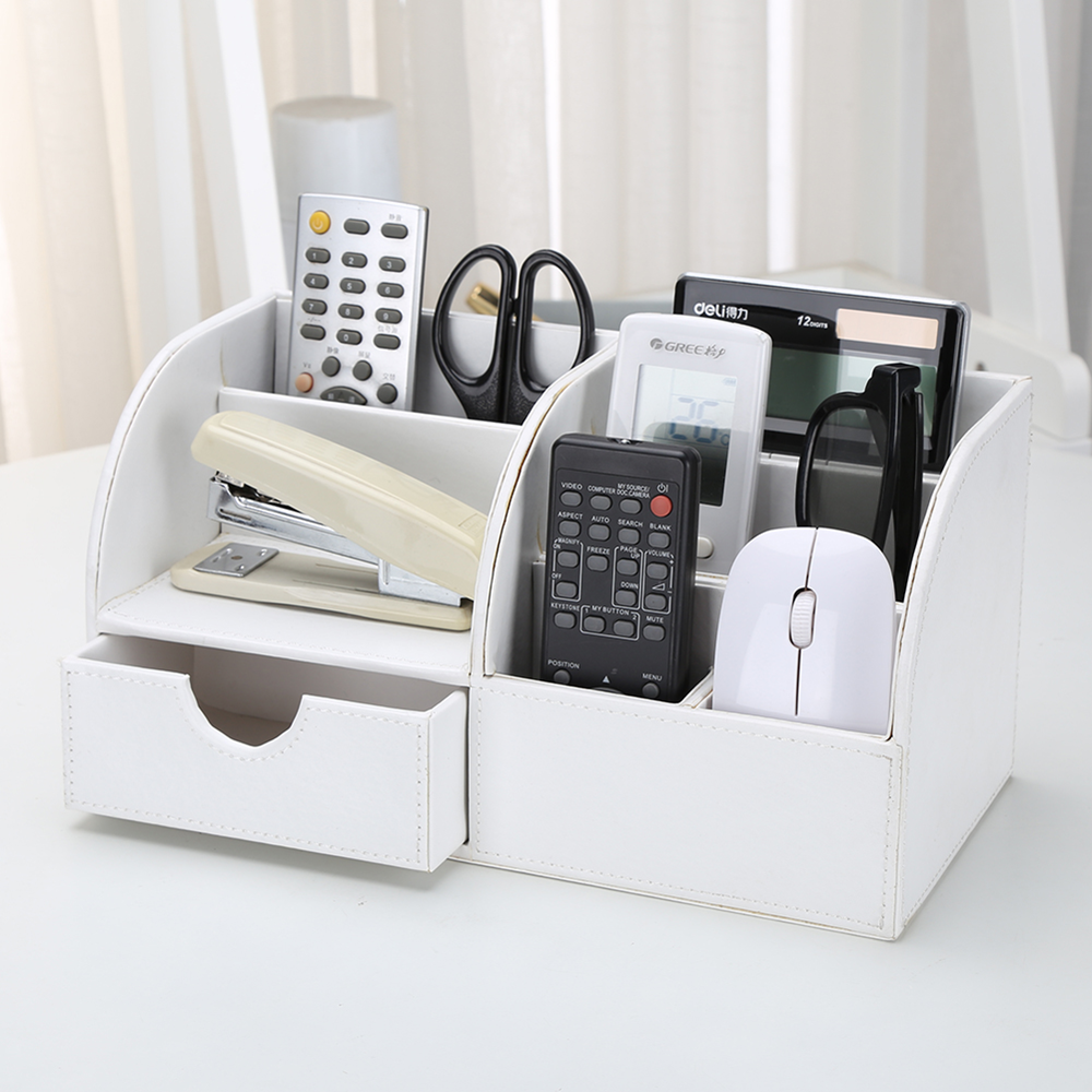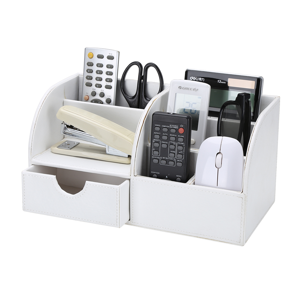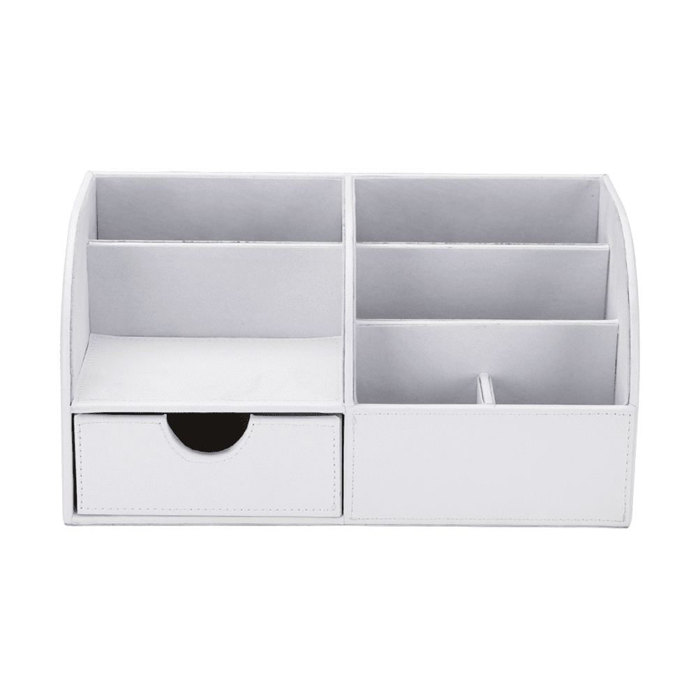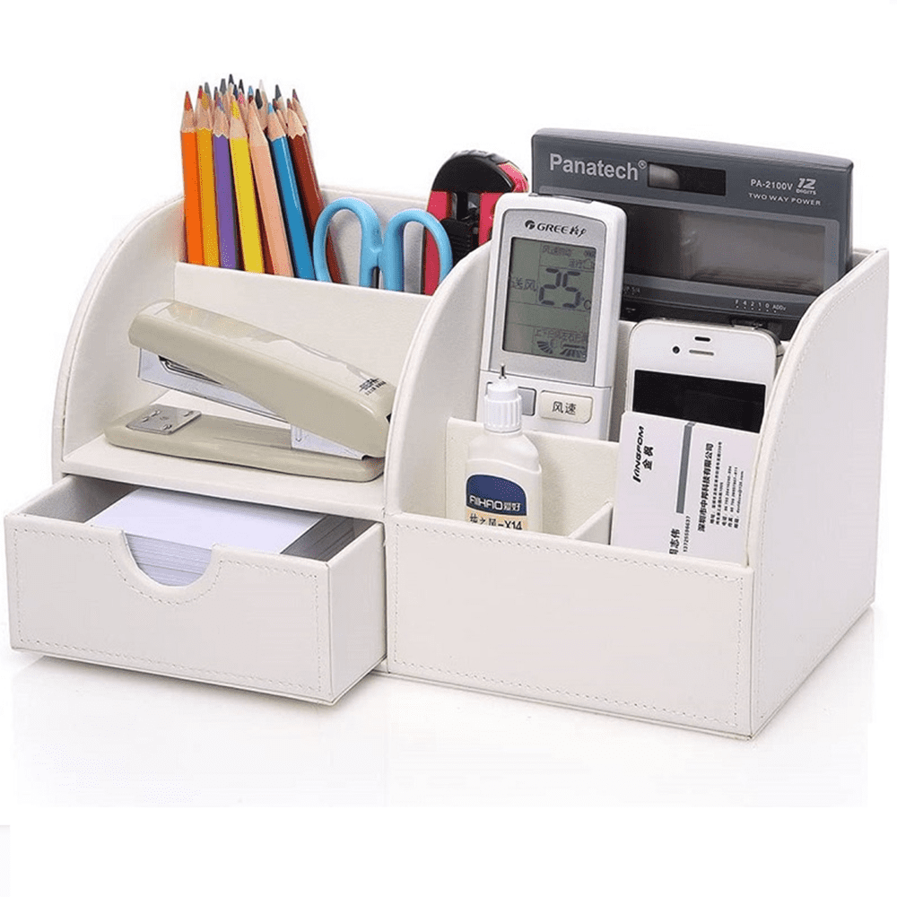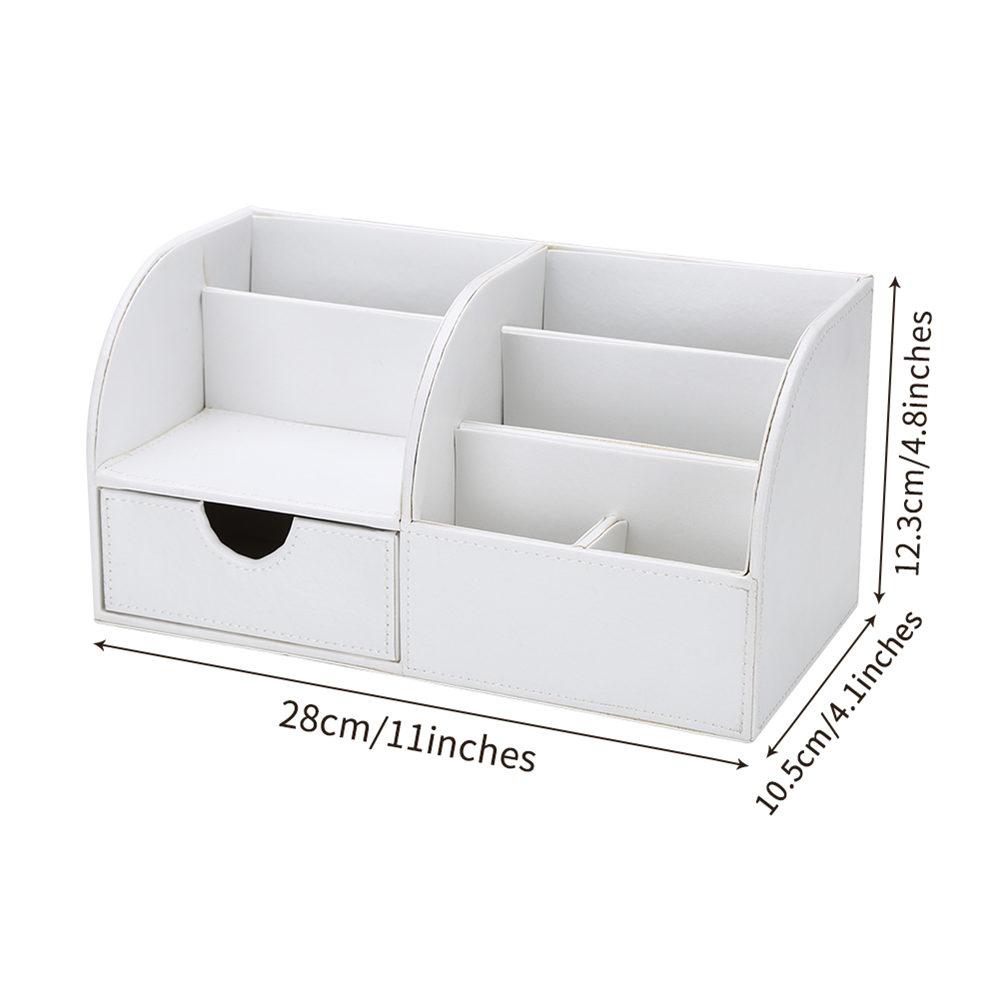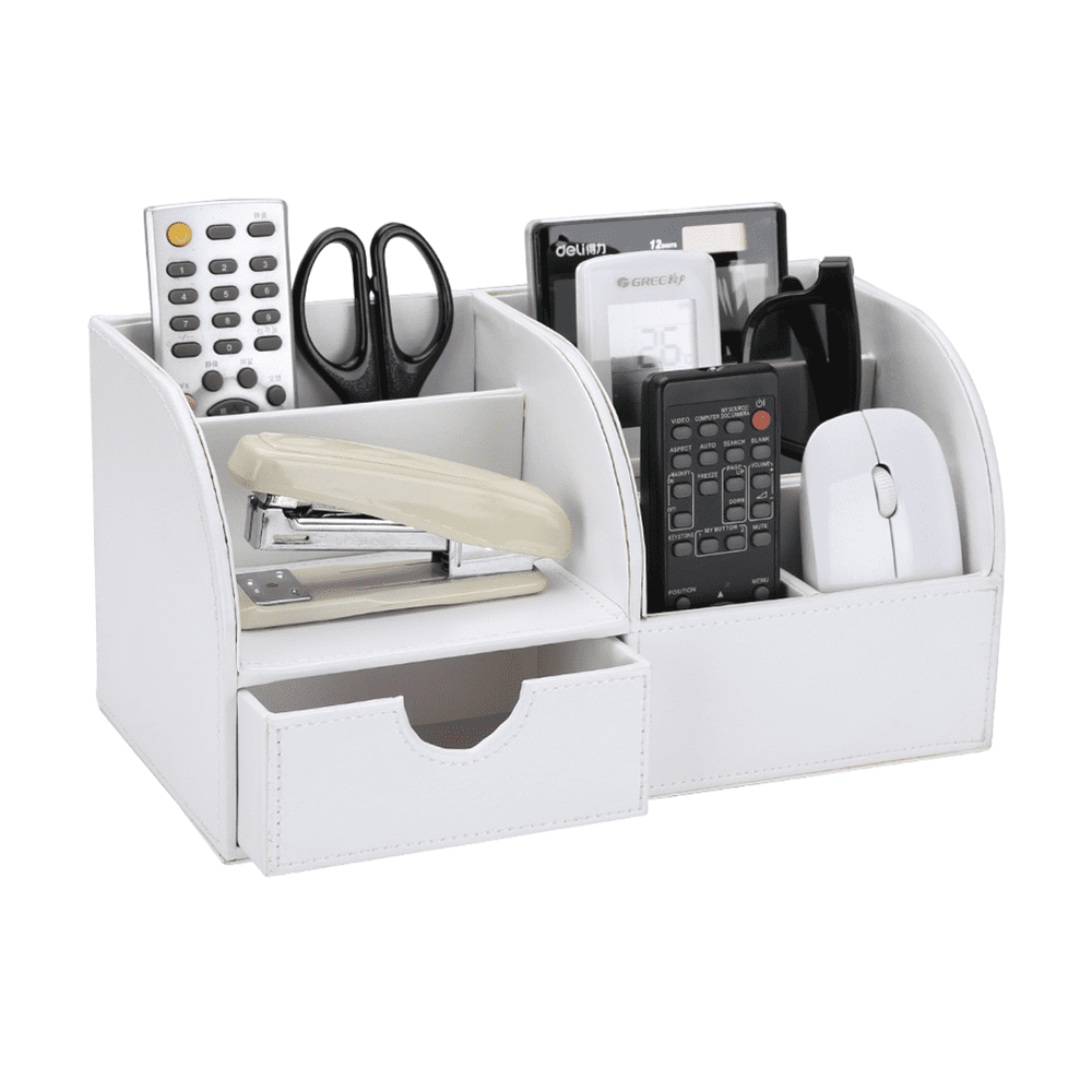 - 6 divided compartments and a small drawer to organize all your office home supplies, pen/pencil, scissors, remote control , cell phone and cards or other small supplies.