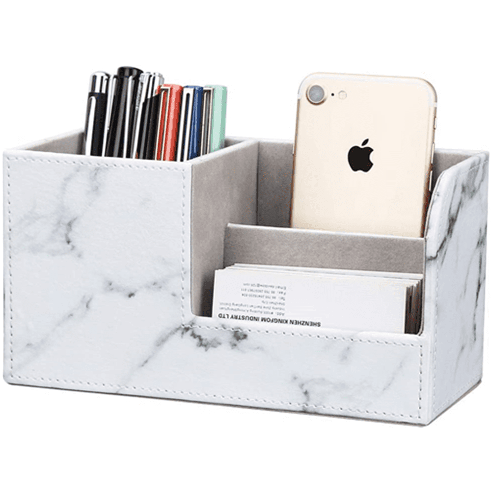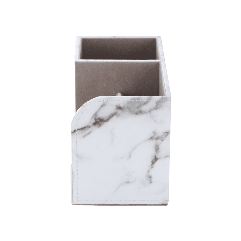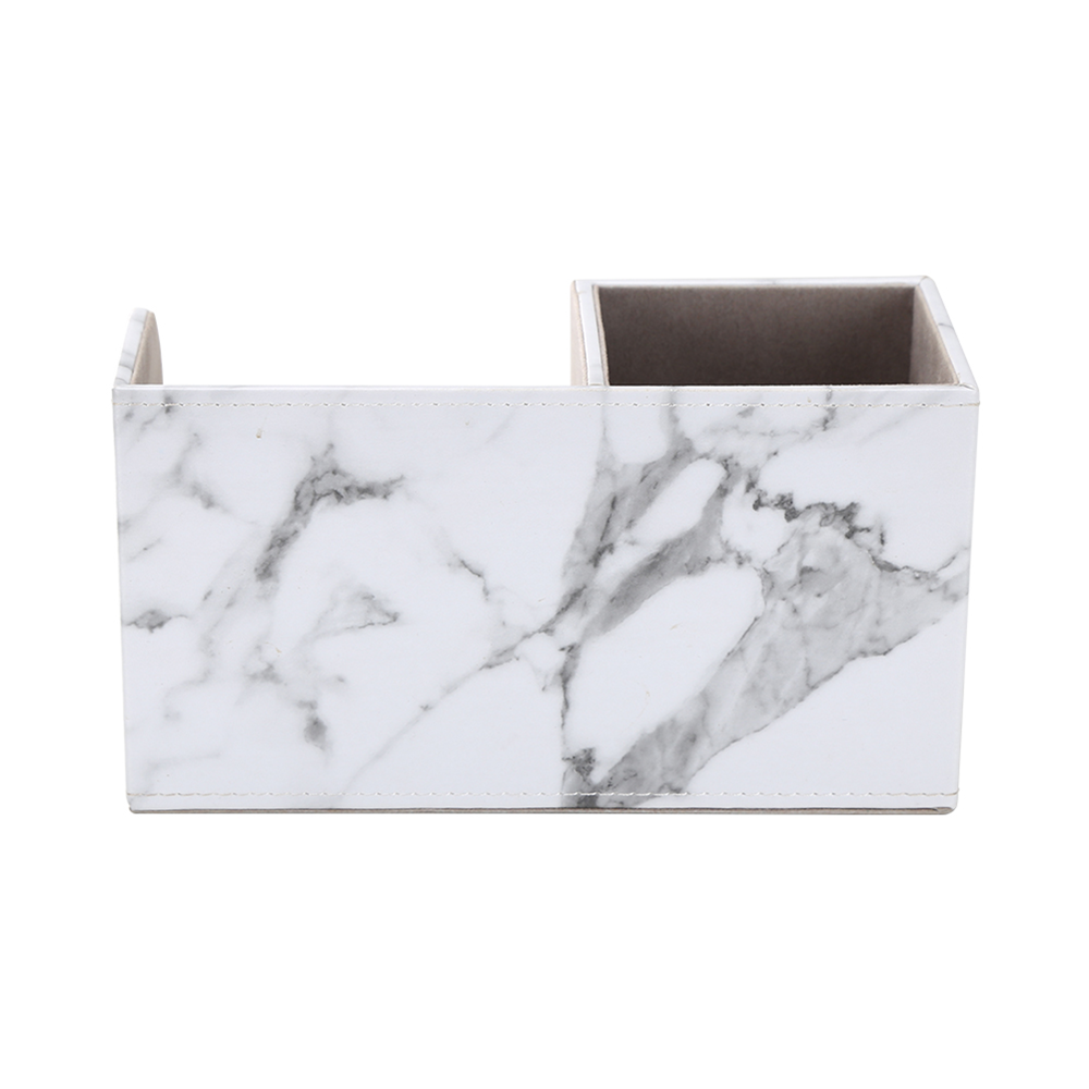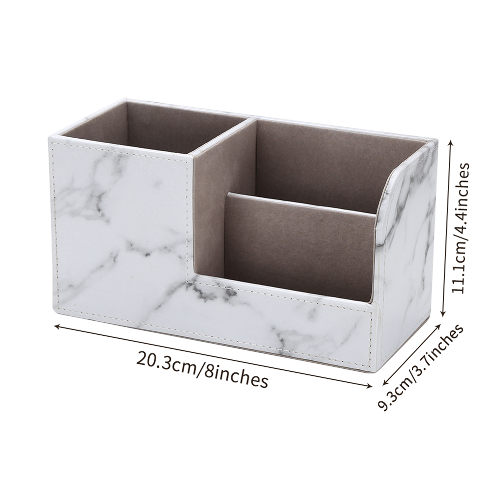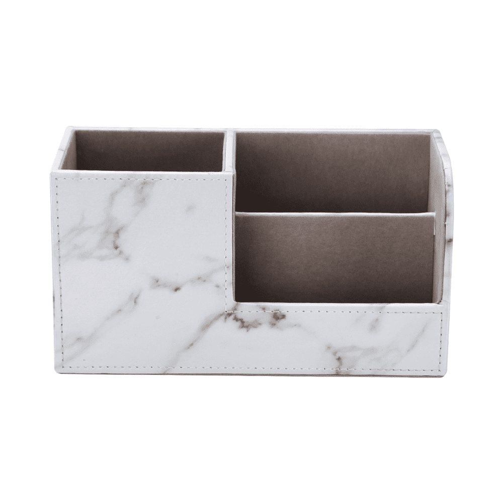- Attractive Desk Organzier: Stylish designed 3 divided compartmentswith white stitched detailing, distinctive marble pattern.There is the added bonus that the organizer box is a decorative element on the desk.