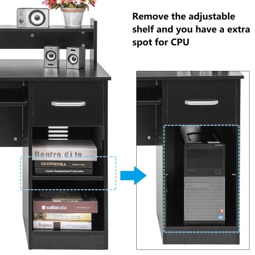8. Installed with a drawer to store away items and keep the area tidy. Two open shelves on the side of the desk provide a perfect home for your CPU and books.