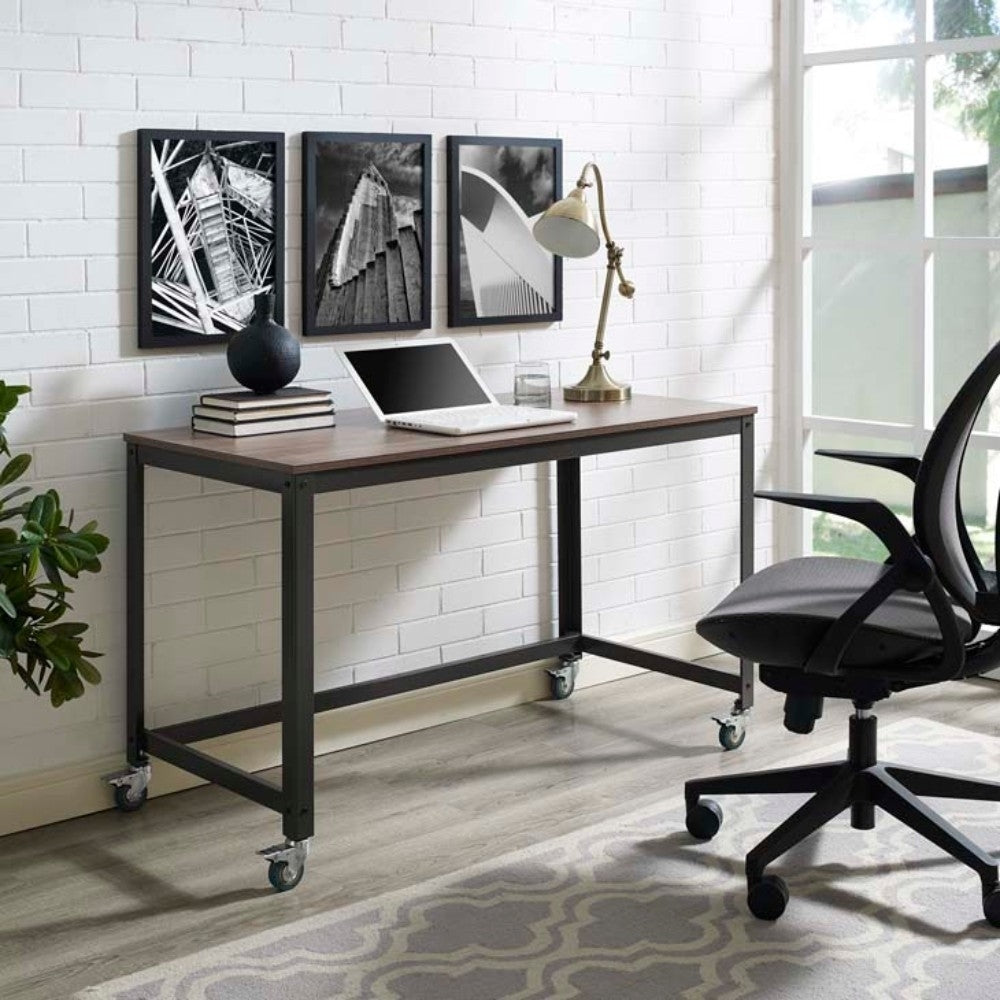 - Crafted of scratch-resistant engineered veneers with powder-coated steel frame