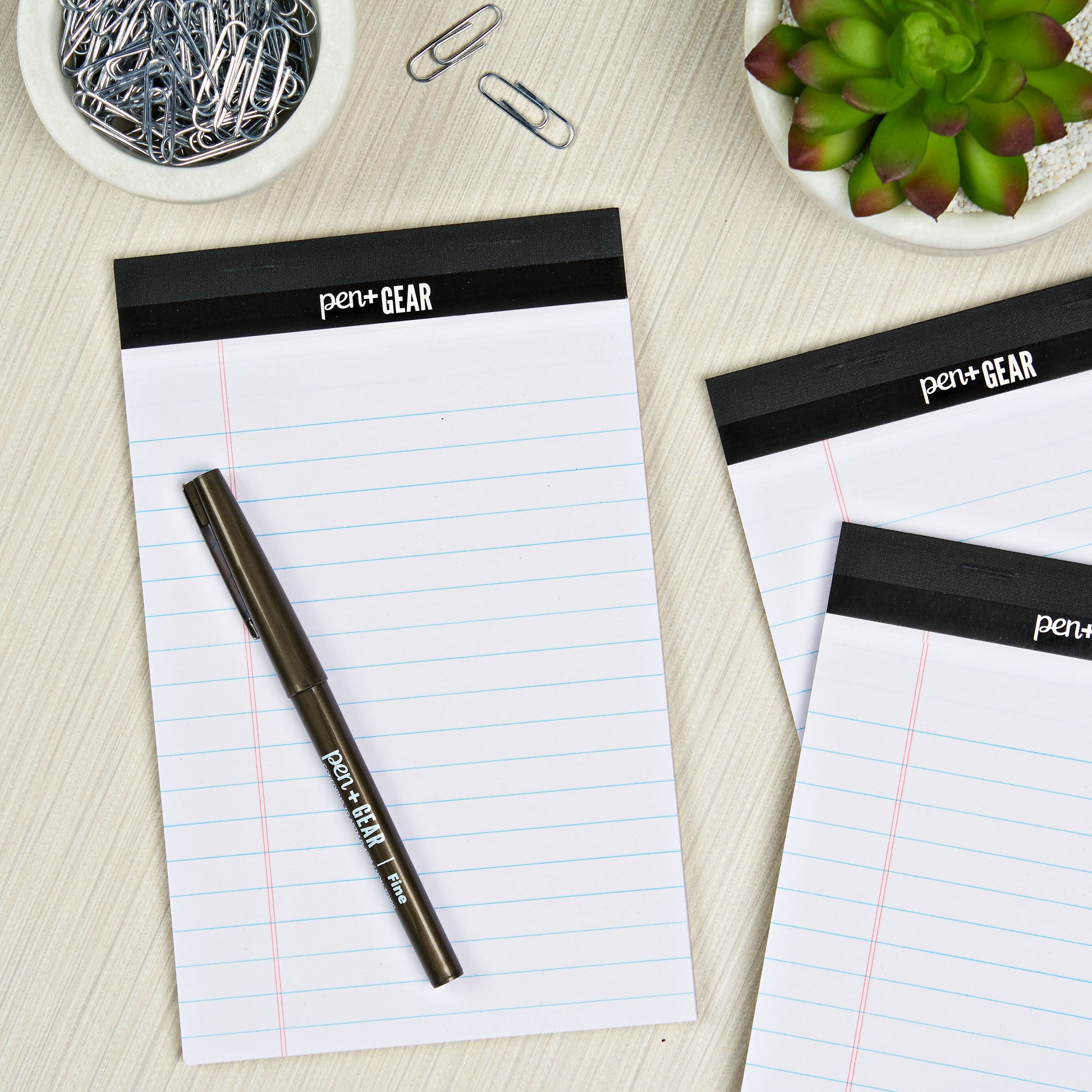 Take care of all your writing needs with the Pen+Gear Legal Pads with white paper. This pack of legal pads are perfect for jotting down meeting notes, questions for interviewees, or writing down your notes for your next bestseller. The legal pads are five inches by eight inches. Keep them in your home for grocery lists or notes for your home improvement project. They come in a pack of three, so you can keep one at work, at home, or in you backpack or purse. The Pen+Gear Legal Pads are a great and versatile notetaking option.
