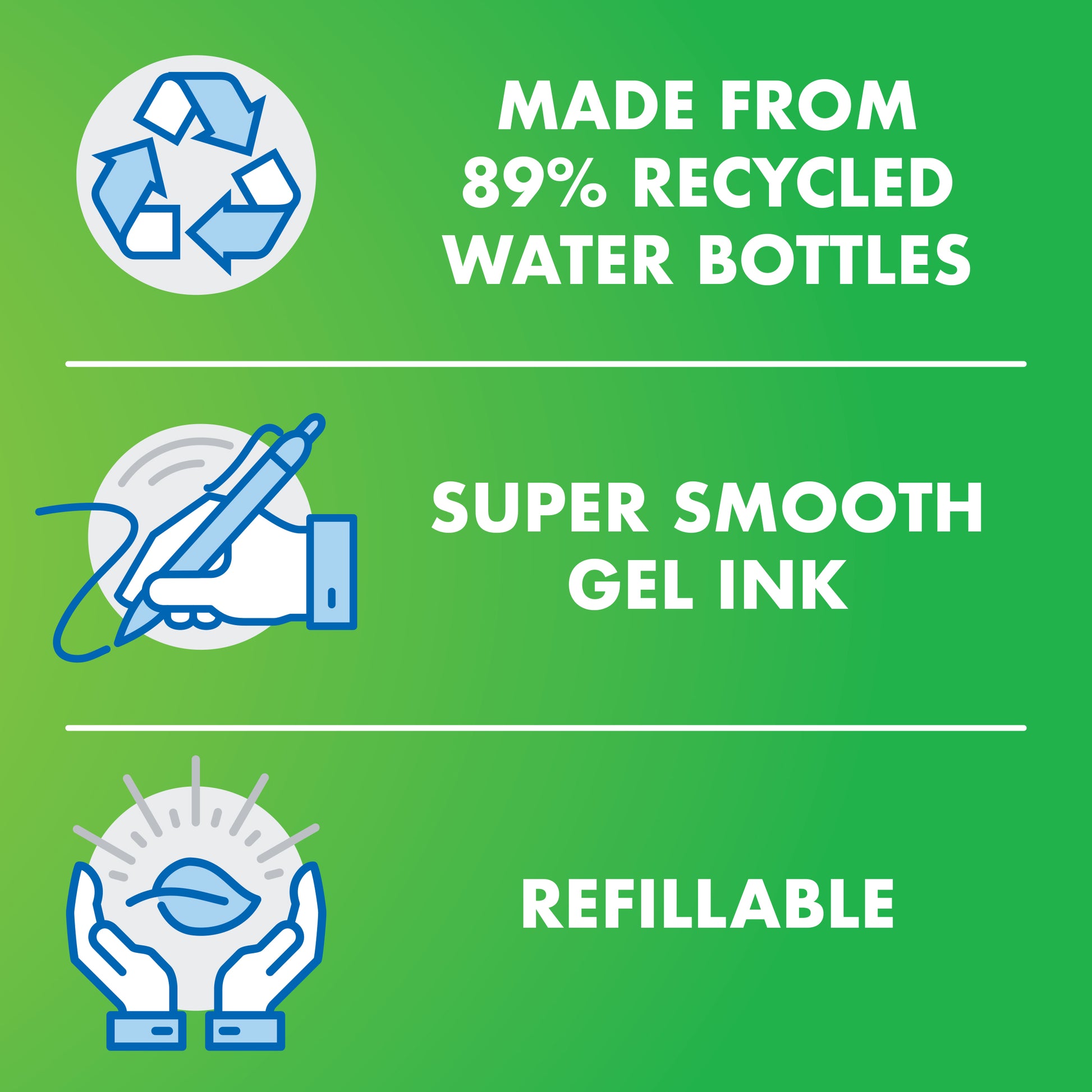 B2P BeGreen Gel Pen is made from recycled plastic bottles and contains a high percentage of recycled material. Vibrant gel ink delivers smooth, effortless writing. Gel pen has a retractable fine point and is refillable for continued use with G2 refills. Gel pen also earned the prestigious Good Housekeeping Seal.