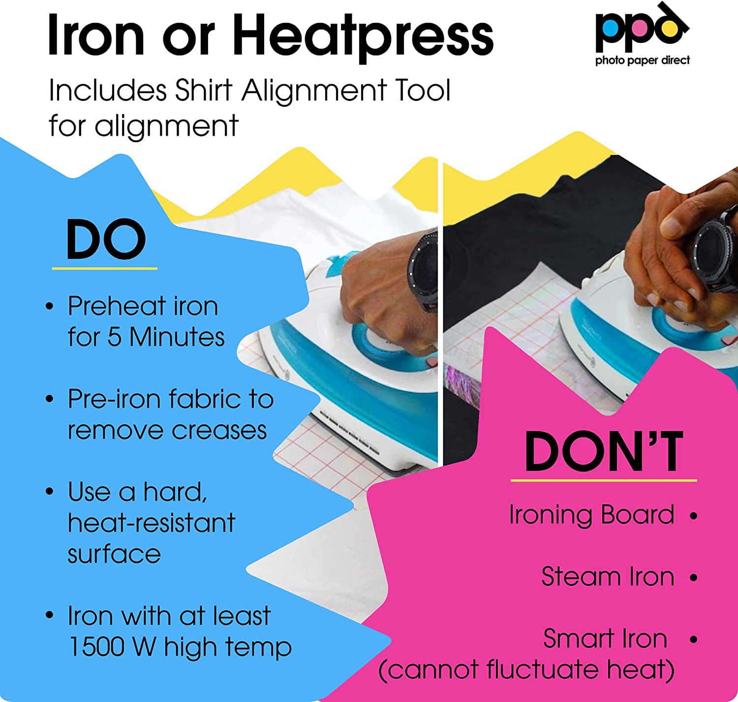 Discover the PPD Dark and Light Mixed Pack T-Shirt Transfer Paper Iron-On Images, Text Or A Combination Of The Two Onto Clothing And Other Fabrics Using Heat PPD Inkjet Transfer Paper for white and/or light fabric (Light Transfer Paper) and Transfer Paper for black and colored fabric(Dark Transfer Paper) allows you to put your own photos, designs, artwork, texts and messages onto a wide range of items such as t-shirts (or other clothing), tote bags, cushion covers and pillowcases, tablecloths, flags and banners and much more. Our uniquely formulated transfer paper bonds with the fabric, leaving it soft, flexible and able to stretch with no peeling. Once applied, the transfer is fully washable. Why PPD Transfer Paper Stretchable. Fully machine washable. Highly durable (no peel). For Iron or Heat Press. Printer Suitability Compatible with all inkjet printers using any standard inkjet inks, dye based or pigmented. Fully compatible with cutting machine or simply cut using scissors. Read more Easy to Use It’s easy to use for all your creative crafts at home with virtually any standard iron, or commercially using a professional heat press. Full instructions and everything you’ll need included in every pack, the only thing you will need to bring is your imagination! Read more Fabric Types Perfect for Cotton, Viscose, Silk, Linen and other fabrics that can be ironed at maximum temperature. Read more