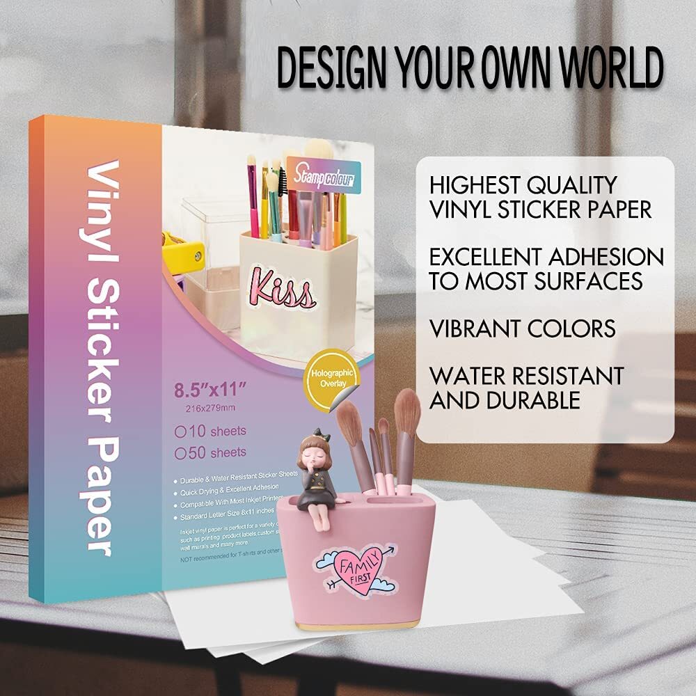 Stampcolour Printable Vinyl Holographic Transparent Sticker Paper Gives You Unlimited Possibilities to Realize Your Design and Creativity. Our Sticker Paper are perfect gift for Mother's Day, Father's Day, Valentine's Day, Christmas, Easter, Thanksgiving, Valentine's day, New Year's Day.This Clear Sticker Paper is Durable and Water-resistant. You Can Print out the Images or Text You Want Easily with a Printer. It Has Strong Ink Absorption, the Printed Images Are Bright in Color and the Text is Clear. It's Ideal for Many Projects for Any Occasions. Also, with Strong Adhesive It Can Perfectly Stick to Solid Smooth Surfaces Without Falling Off. if You Have Any Questions About Our Products, Please Feel Free to Contact Us.
