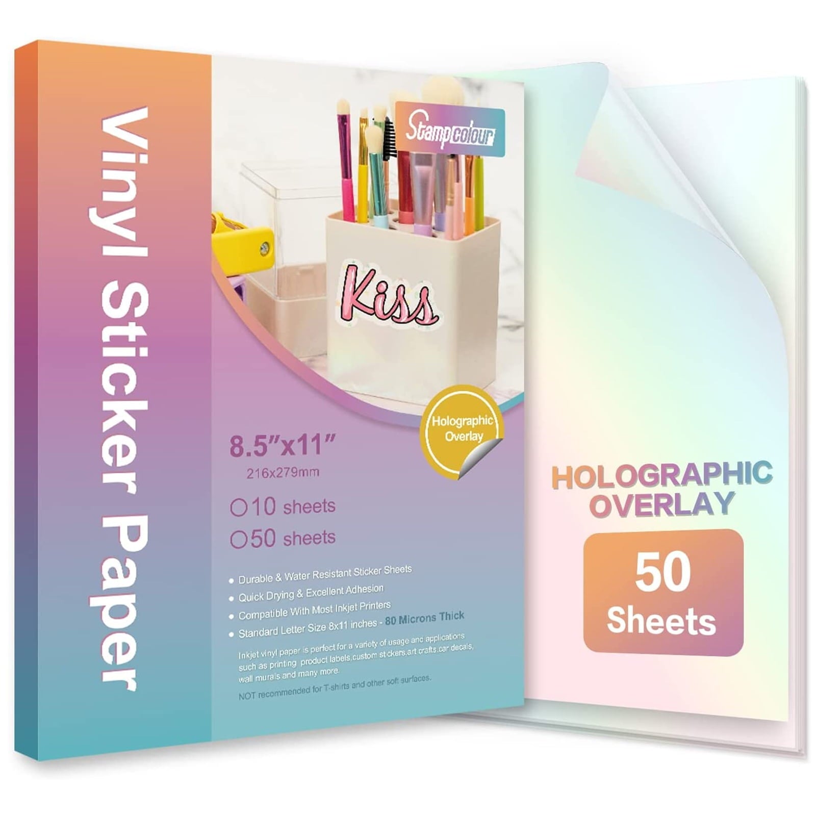 - 【holographic Transparent Vinyl Design】printable Vinyl Sticker Paper Holographic Clear for Inkjet Printer 50 Sheets ,us Standard Letter Size - 8.5"x11" ,it Suitable for High Resolution and Clear Image Quality.rainbow Colorful Surface Colors with Flat Surfaces, Smooth Printing, and High Adaptability. Professional Printing Layer, Better Adhesion.