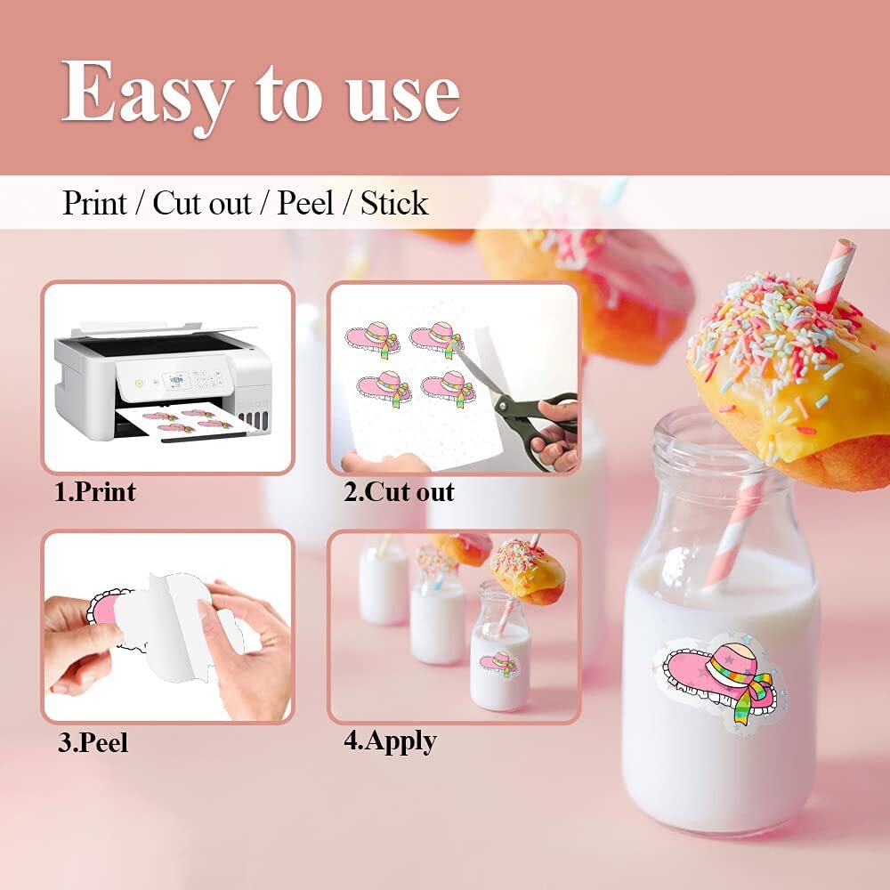 - 【highly Durable Vinyl Sticker Paper】holographic Sticker Paper for Making Labels & Crafts,waterproof Scratch and Tear Resistant Paper,quick Ink Dry,high-quality Transparent Frosty Clear Printable Sticker Paper,your Artwork Will Be Extremely Durable, Bright Colored and Reliable.
