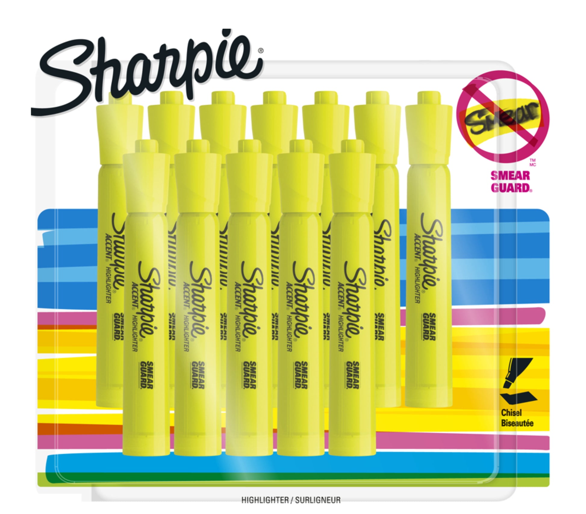Sharpie Highlighters are reliable and long-lasting. Each highlighter features a fluorescent color, a wide barrel and large ink supply for dependable marking. The quick-drying ink resists smearing (let ink dry before highlighting). These highlighters feature an easy gliding chisel tip that highlights and underlines both wide and narrow lines of text.