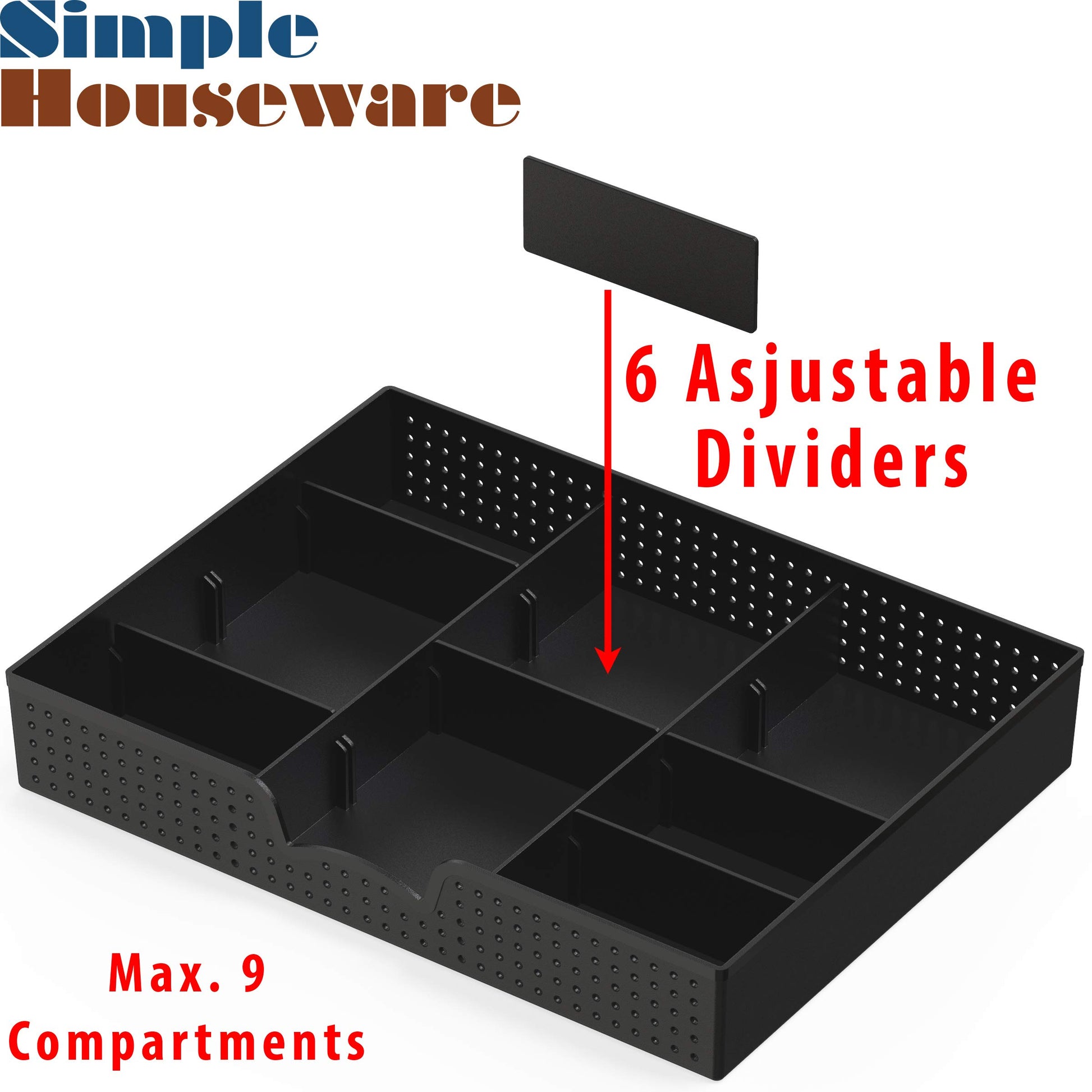 Simple Houseware Drawer Organizer Tray with 9 Adjustable Compartments, Black