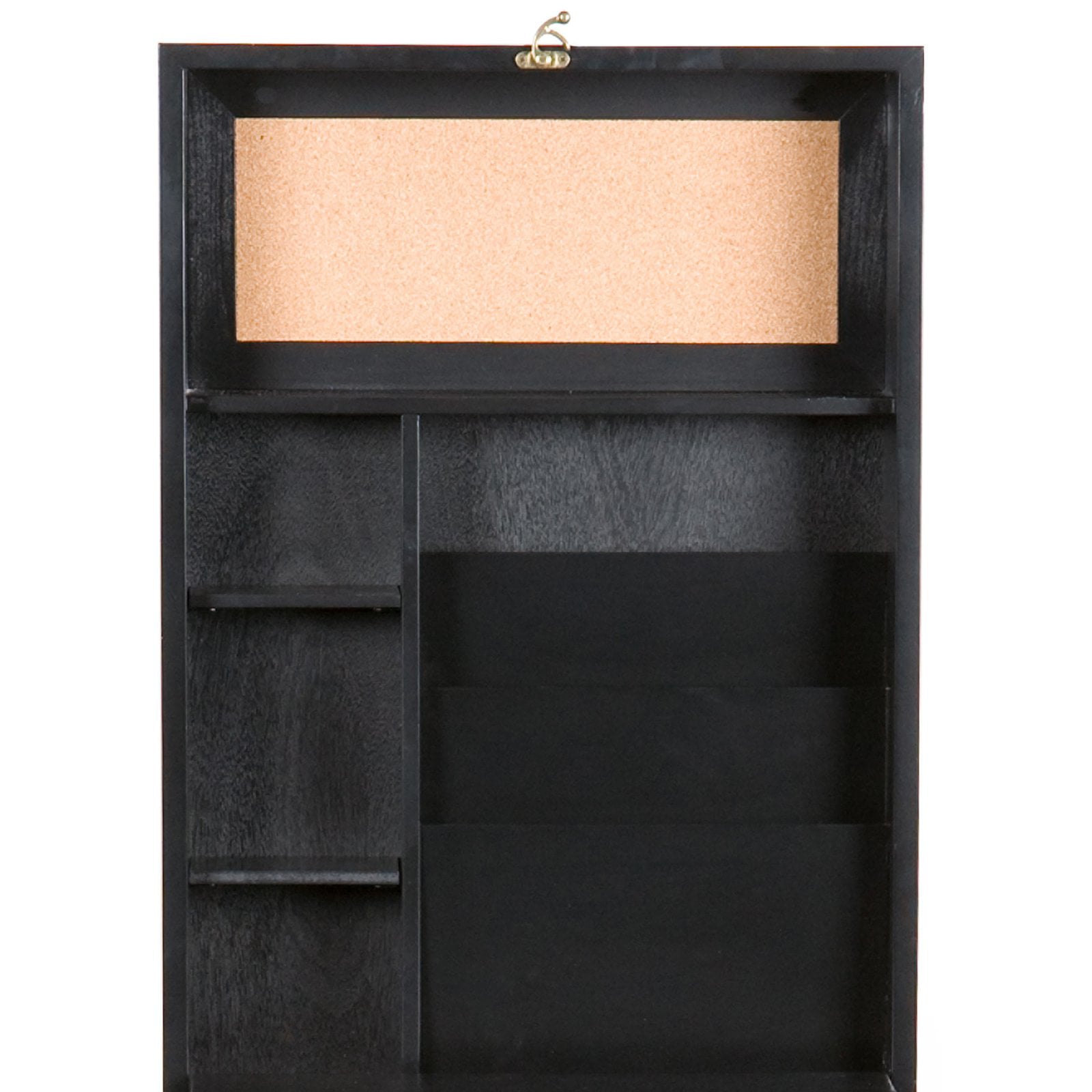 - 3 shelves, 3 slot organizers, and corkboard panel