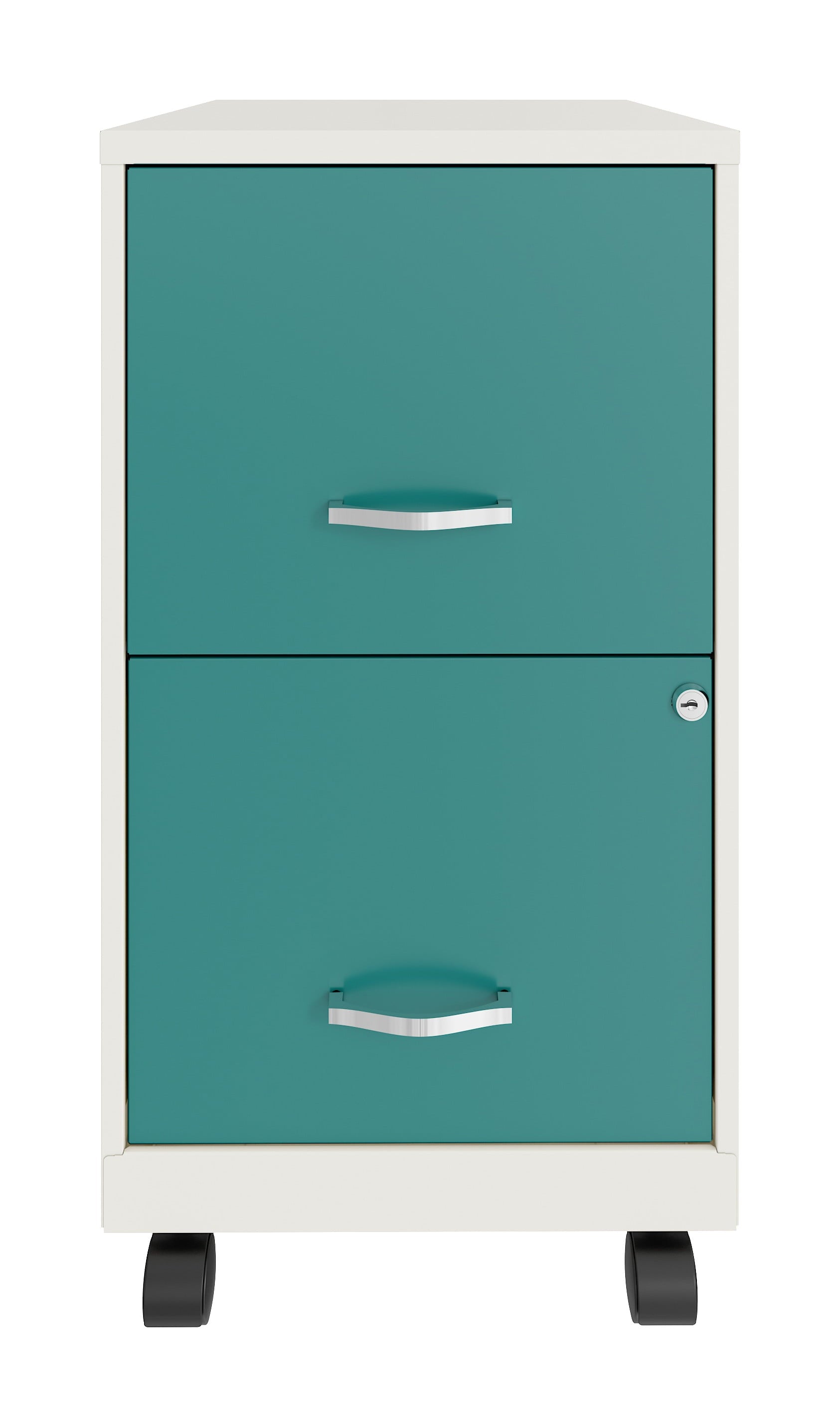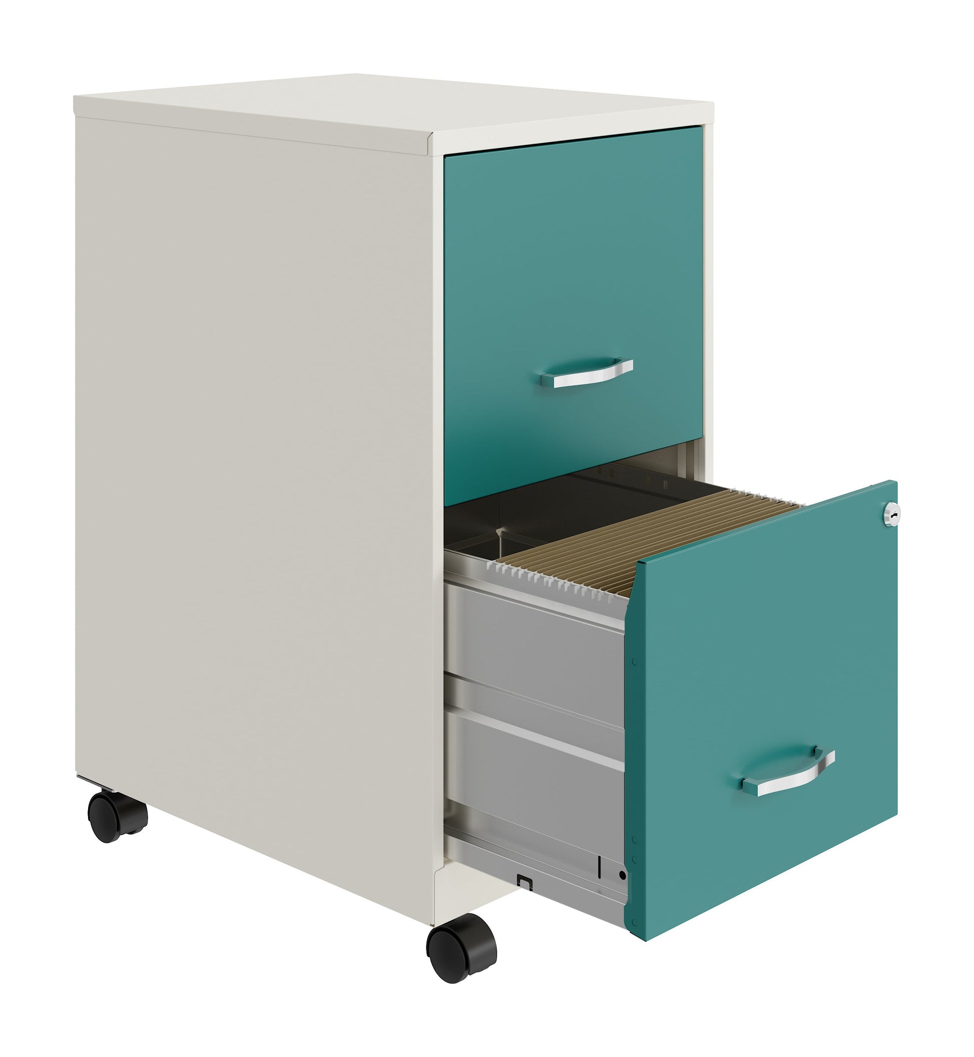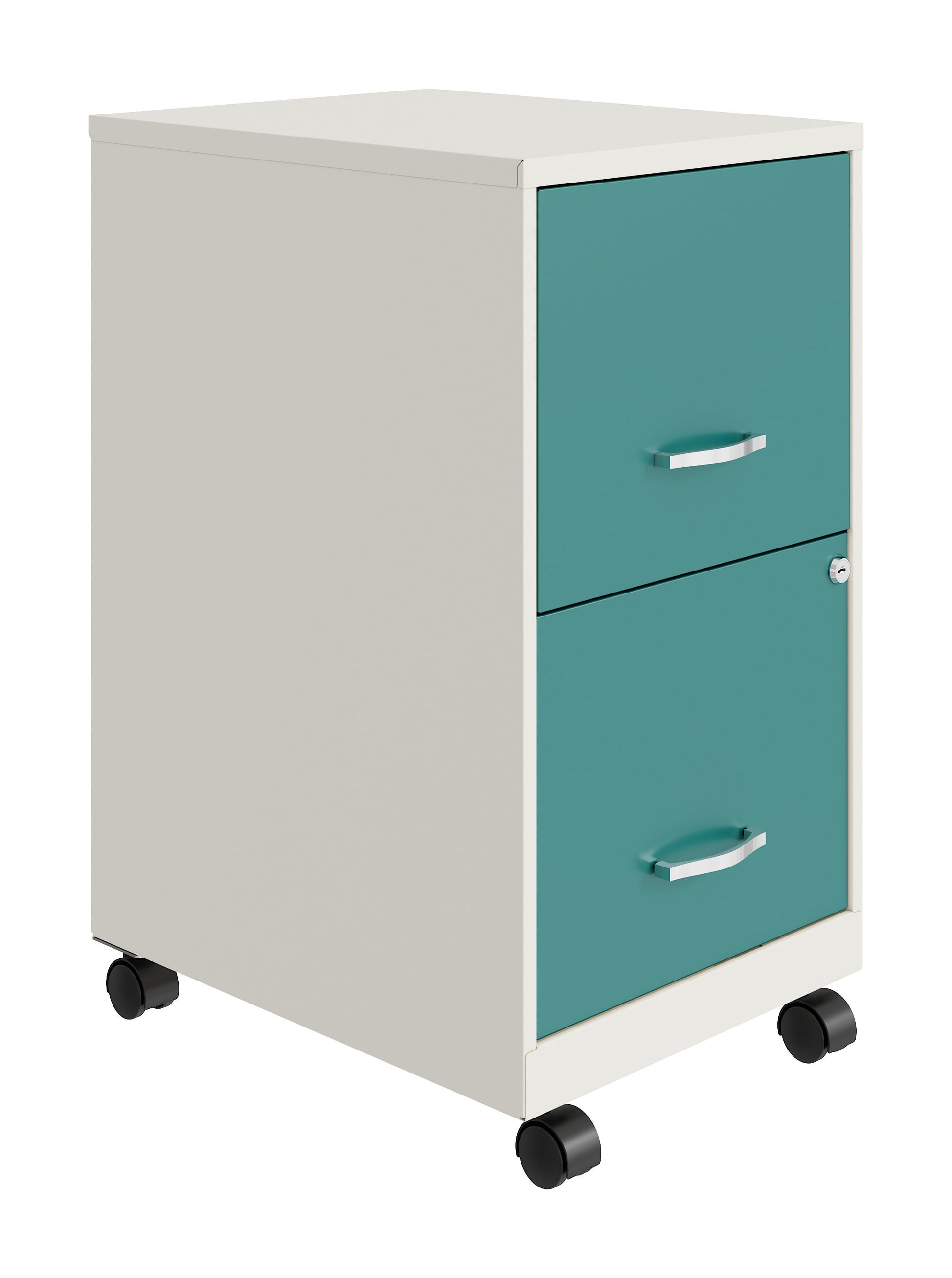 - Space Solutions 18" Deep 2 Drawer Mobile Letter Width Vertical File Cabinet, Pearl White / Teal
