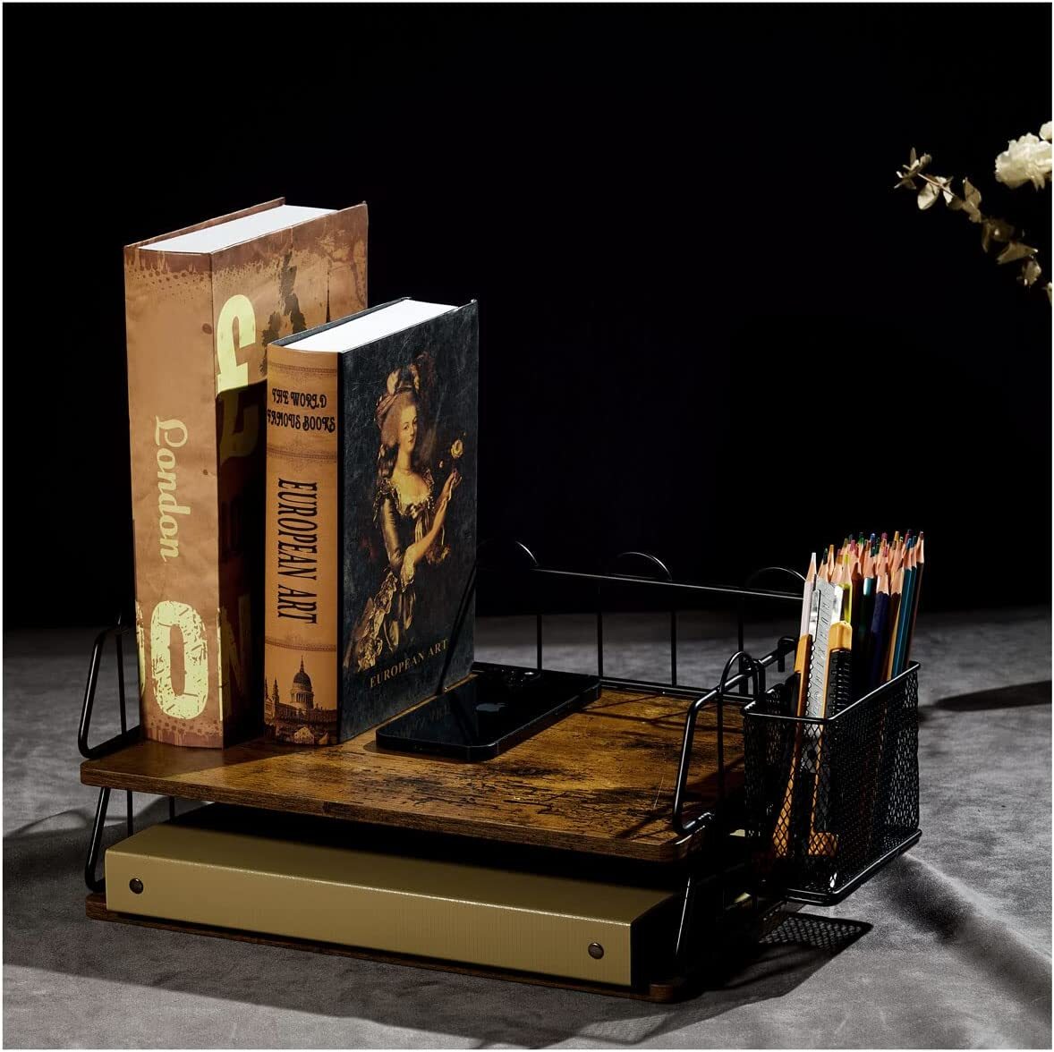 🗂️The desk organizer has space for all your desk organizers and accessories, such as pens, letters, invoices, receipts, magazines, notebooks, smartphones, paper Files, folders, mailing lists, A4 size paper, stay away from cluttered desks and increase productivity