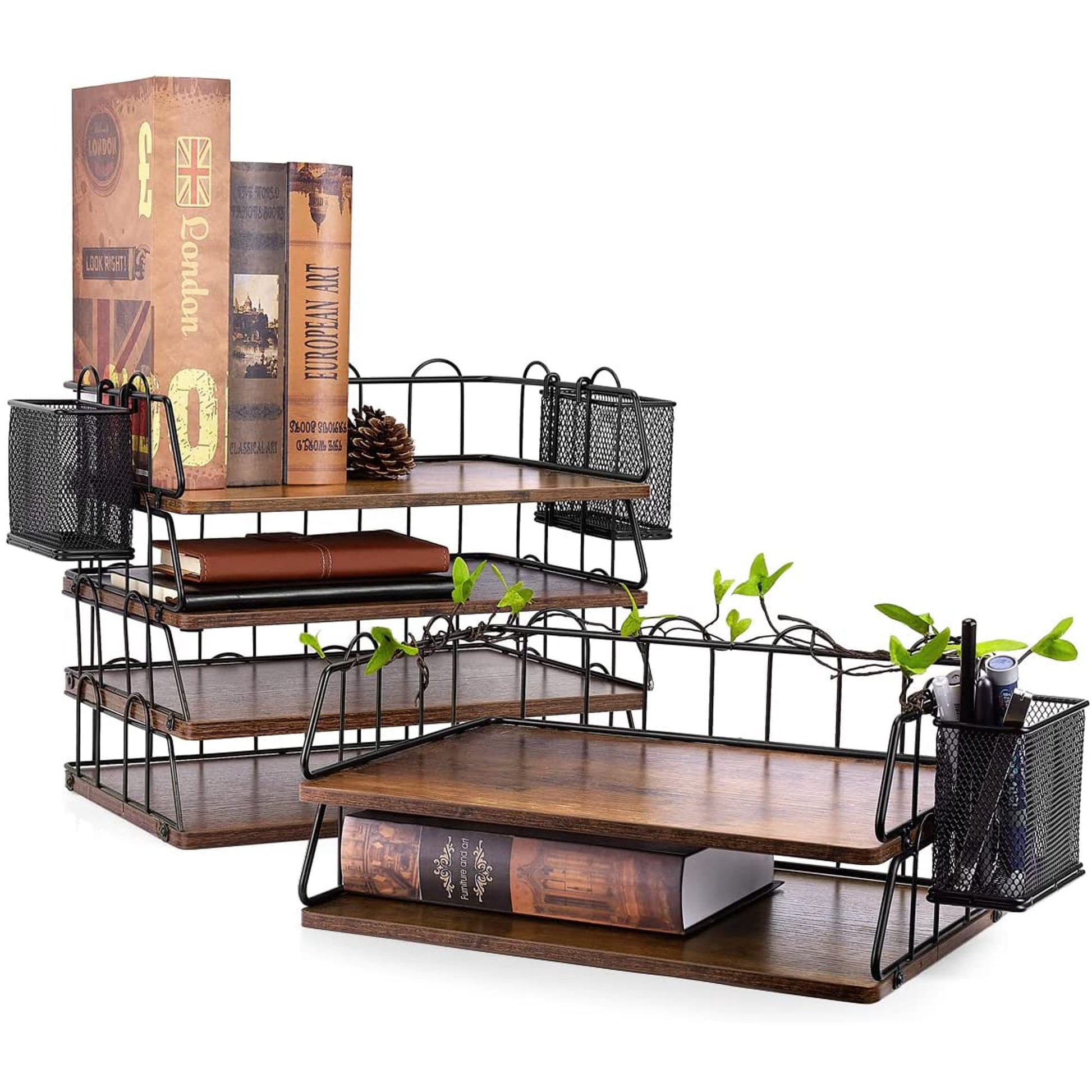 🗂️Desk organizer, paper tray design inspired by the rich American style and classical atmosphere, made of SUS304 stainless steel and antique wood, buyers can get a free stylus holder within the specified time Desk organizer, a stackable 2/4/6 layer desk organizer, easy to assemble, stable structure does not occupy space, retro design adds elegant charm, make your office look more comfortable Aesthetics.