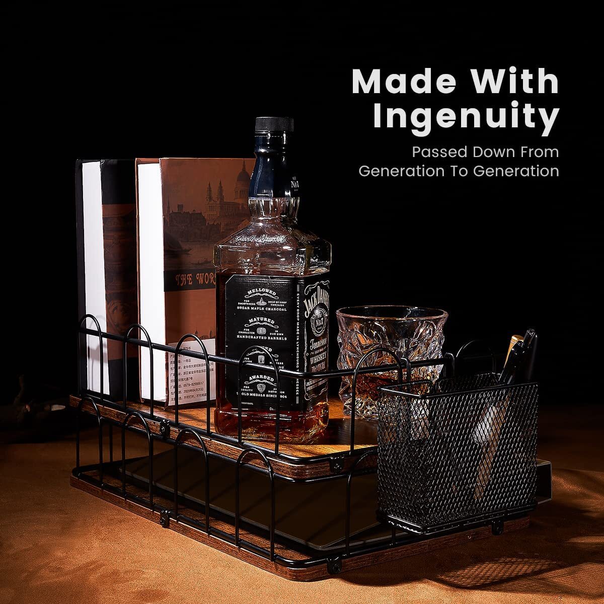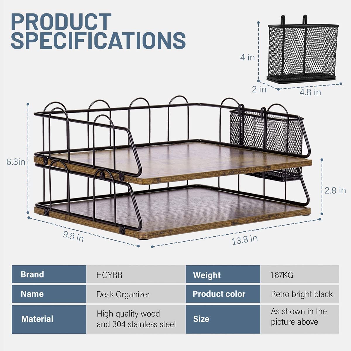 - 🗂️Desk organizer,paper tray design inspired by the dense American style and classical atmosphere, Made of SUS304 stainless steel and antique wood