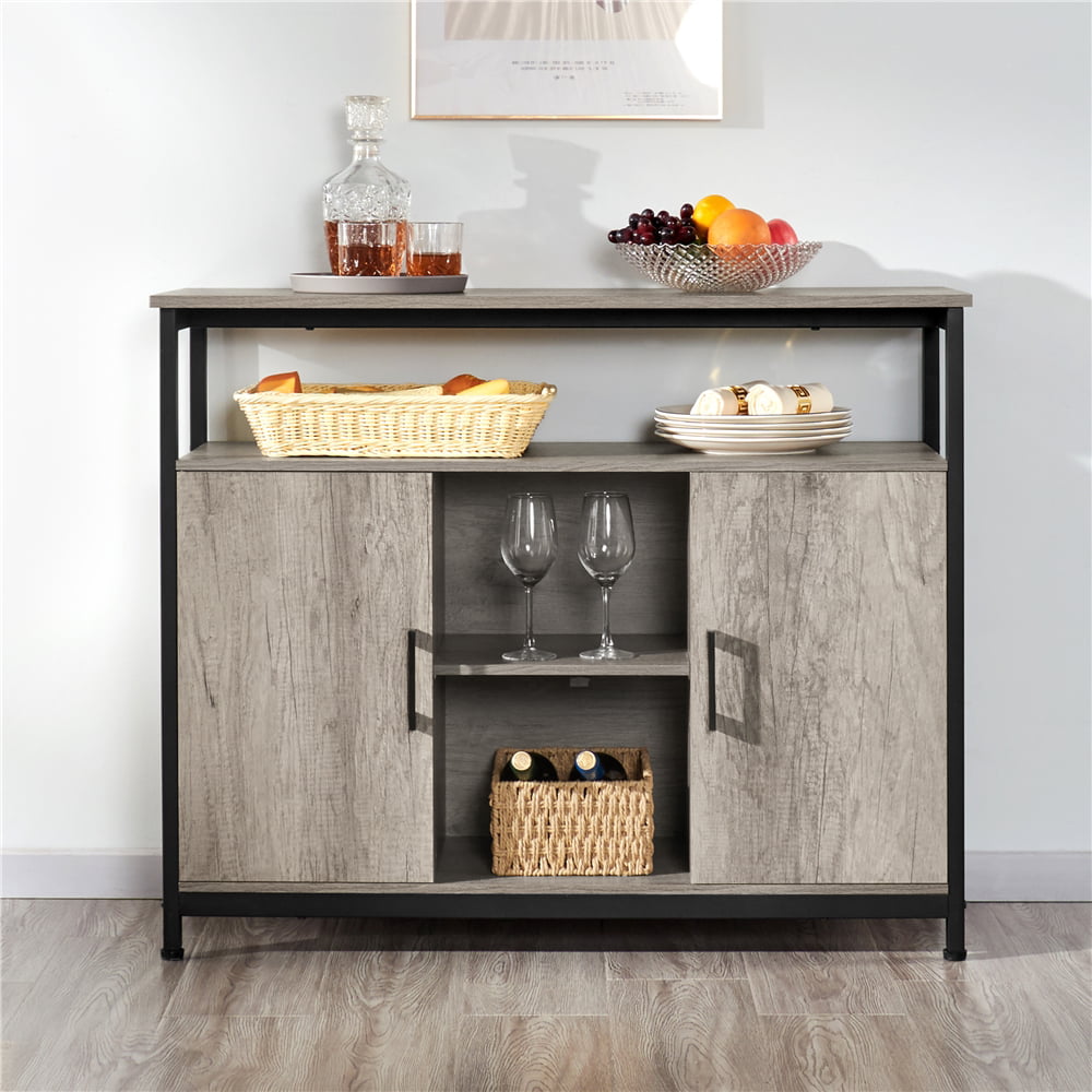 Topeakmart Storage Sideboard Wooden Kitchen Buffet Storage Cabinet with Two Doors and Adjustable Shelf, Gray :
