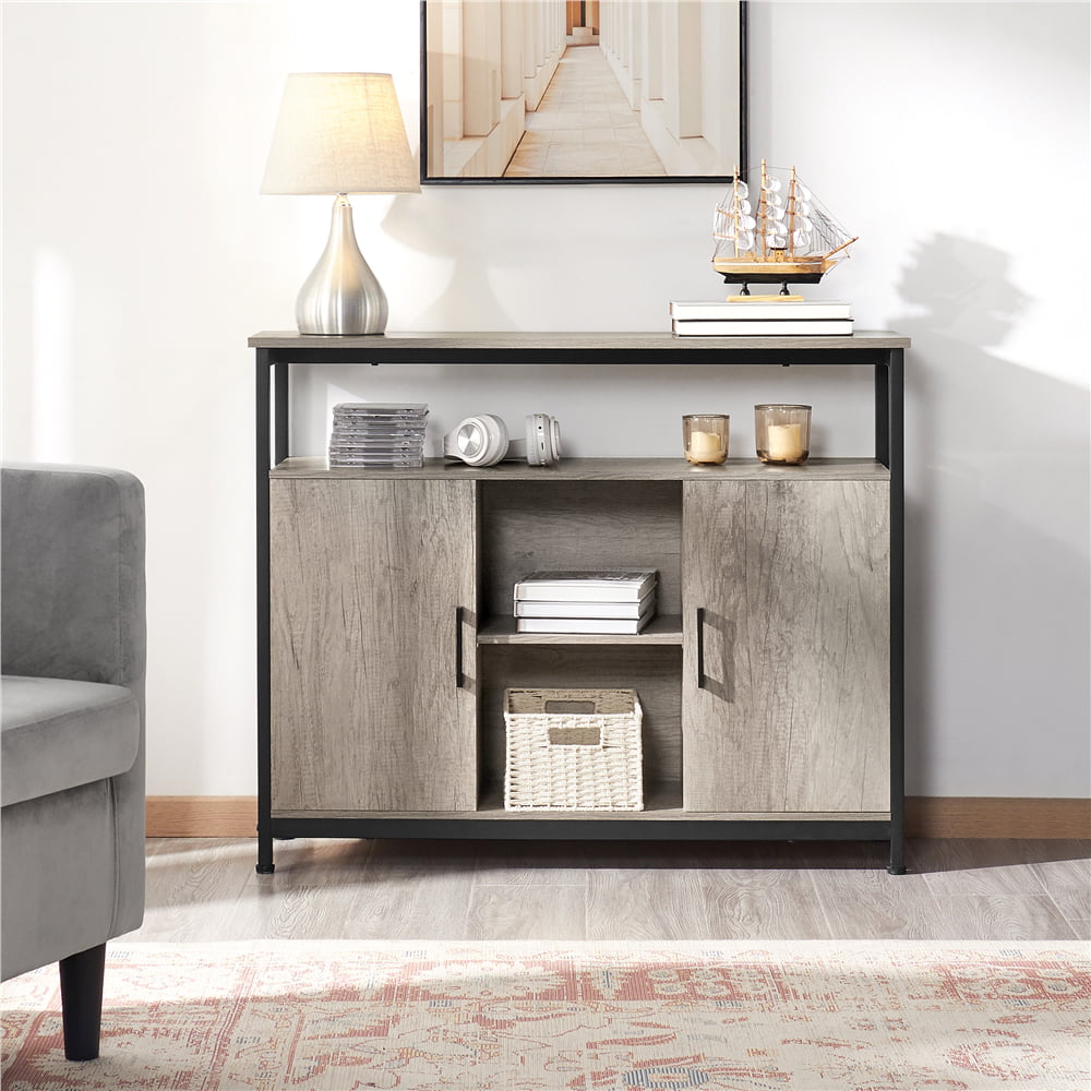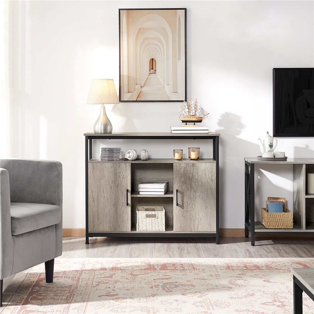 Open up your design possibilities with this storage sideboard. The subtle mix of materials in this piece creates an industrial and gender-neutral look that can be used in a variety of rooms. Take this one for example: Crafted from MDF, it showcases a streamlined design with four exterior shelves that bring a stage to display a few decorative favorites. Extra space rest behind the two wooden doors, bringing a spot to tuck away table linens, vases, and more. In addition, on the top shelf of this table can be placed TV and other electronic devices to entertain your life.
