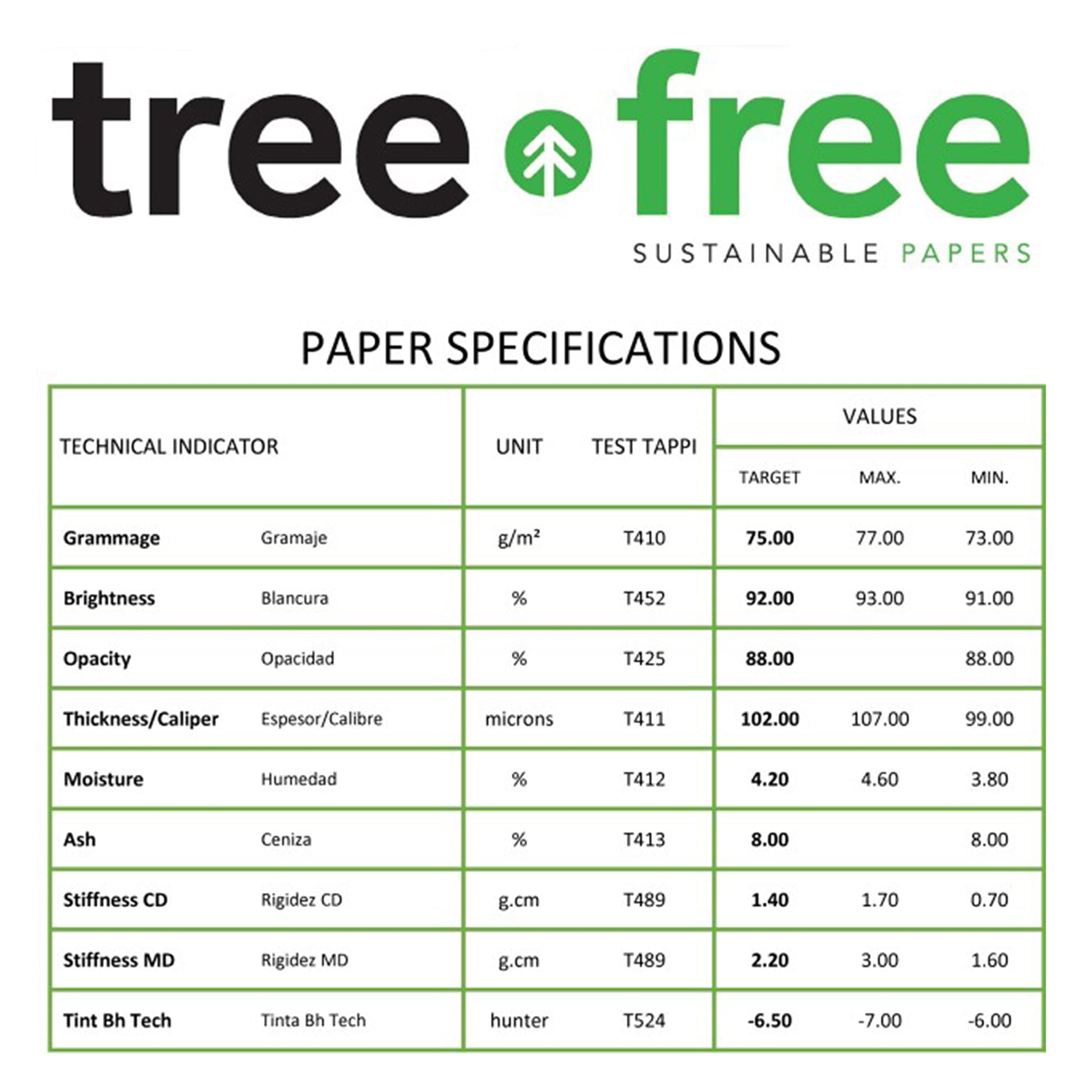 - ⭐ SUSTAINABLE. Treefree paper has a long-lasting commitment to the environment. Offsetting the CO2 generated from growing, manufacturing, distribution, and disposal of the paper is our sustainability as the core value.