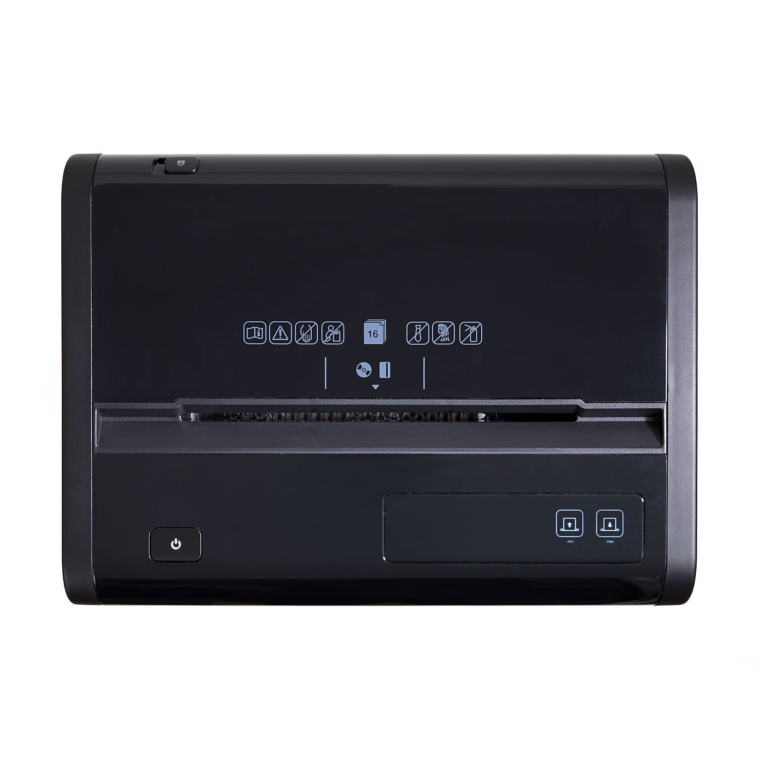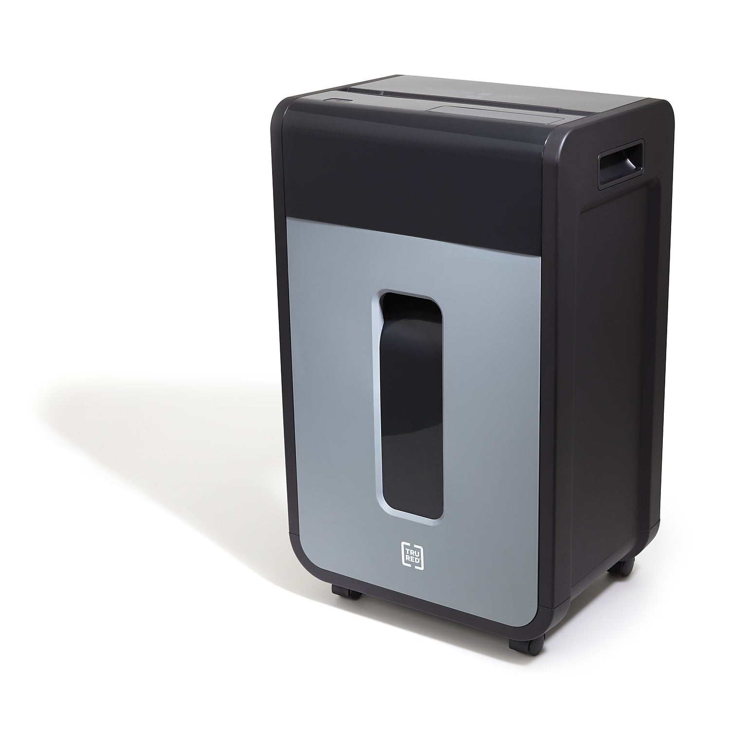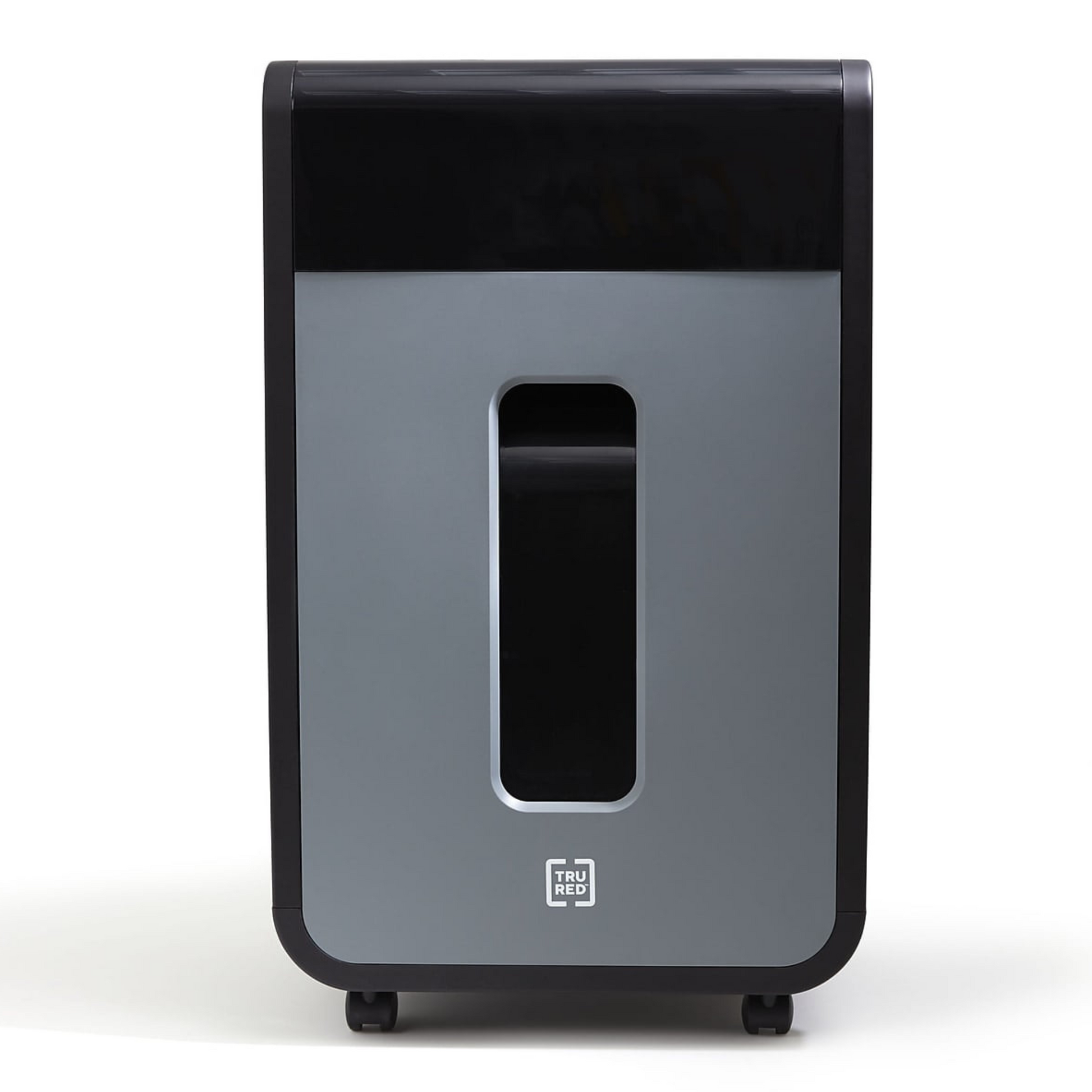 TRU RED™ 16-sheet micro-cut shredder reduces a standard letter sheet to up to 1200 particles.Turn documents, cards, and CDs into 4mm x 12mm particles with this TRU RED™ 16-sheet micro-cut shredder. Designed with business in mind, the shredder has built in handles, smooth rolling dual casters, and an easily accessible waste bin to keep your data waste secure and your office area clean. An easy to use interface and a capacity up to 130 sheets per cycle make this shredder a valued addition to your office. The Micro-cut takes your data down to 4mm x 12mm particles (up to 1200 per letter size sheet). Provides complete shredding for: CDs, credit cards, staples, paper clips, paper, and DVDs. P-4 Rating provides increased sensitive data security for financial, personal, and confidential information. Dimensions: 24.4"H x 14.7"W x 11.5"D. 20-minute continuous run time with a 40-minute cool down between cycles. Black/gray bin with 8 gal. capacity for easy emptying and disposal of shredded content alone or with Shredder Bags (sold separately). Interlocking Bin prevents operation of shredder if bin is not fully engaged. LED Indicator for Bin Full allows you to see status at a glance. Essential safety features such as Anti-Jam, Auto Start-Stop, Auto-Reverse, and Overload protect the user as well as the shredder. Dual casters make shredder easy to move and lock once in place. 3-year limited warranty. WARNING: This product can expose you to chemicals including Di(2-ethylhexyl)phthalate which is known to the State of California to cause birth defects or other reproductive harm. For more information go to www.P65Warnings.ca.gov.Product Instructions. Sold as 1 Each.