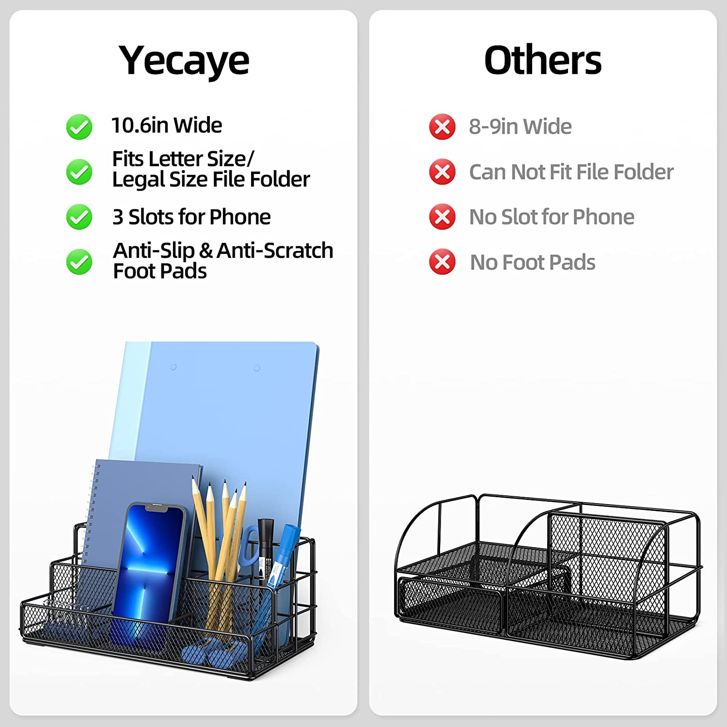 Multipurpose Desk Organizer: As versatile as it is durable, Yecaye desk organizer can sort various types of desk accessories in office, home workspace, dorm desk, classroom, study area, or simply hold your remote control and other small gadgets in living room, bedroom or entertainment center.