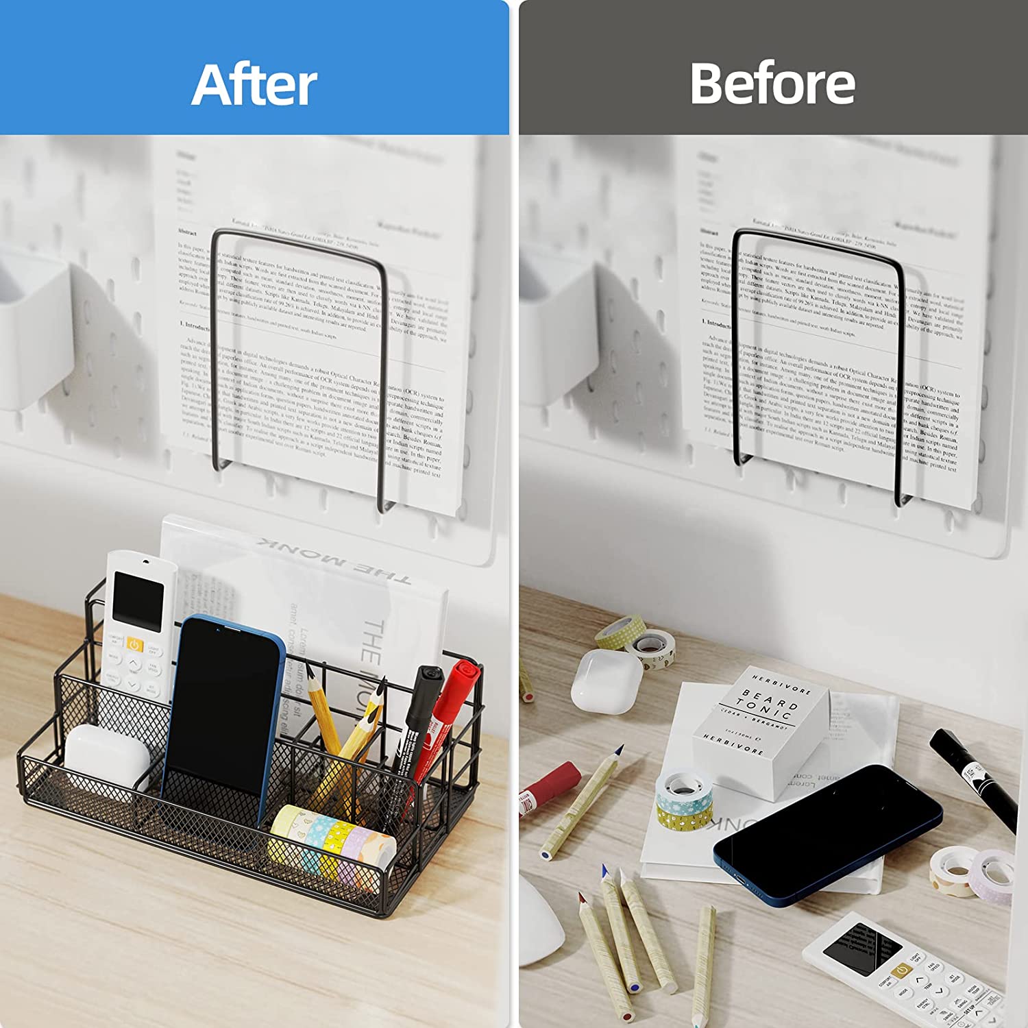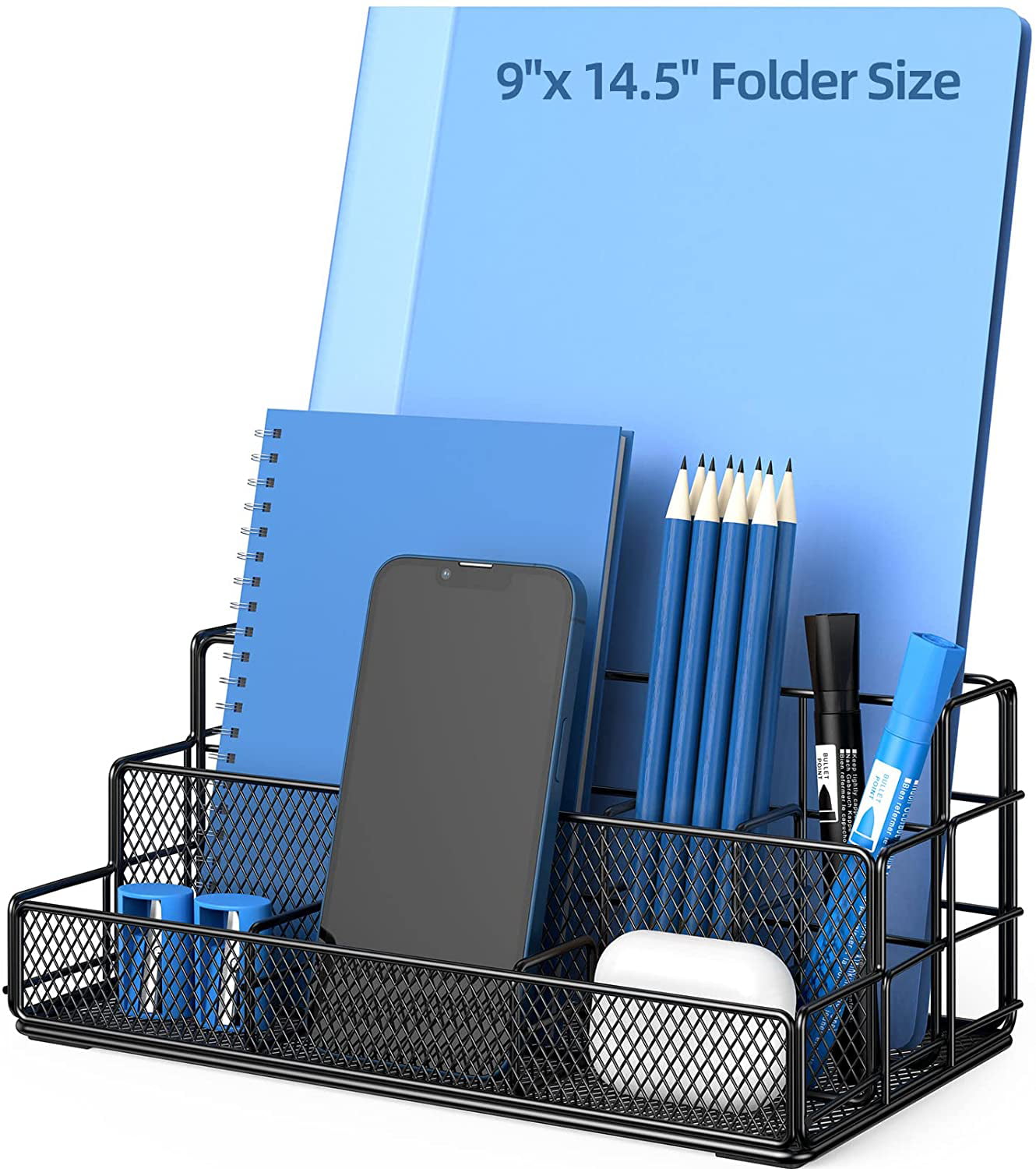 Upgraded Desk Organizer: Expanded to fit anything from your important documents to essential desk supplies, such as letter size/legal size file folder, A4 notebooks, magazines, mails, notices, writing utensils, rulers, scissors, clips, post-its, USB sticks, cellphone, so your desk can stay as neat as it can be.