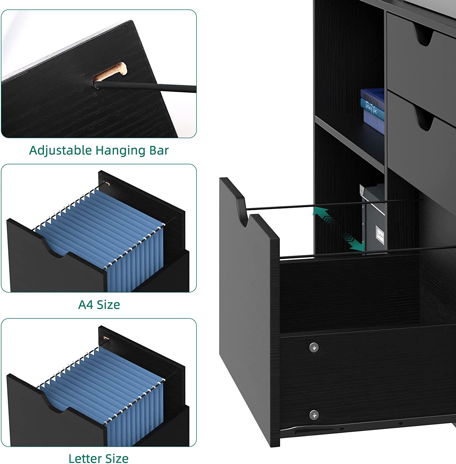 - LARGE STORAGE CABINET: It To provides a great storage solution restore your work space, with thea wide desktop to holds printers or plants, Bottom drawer with adjustable hanging bars to stores your letters and& A4 folders neatly, and the open adjustable shelf shelf with 3 optional positions to fits different sized items