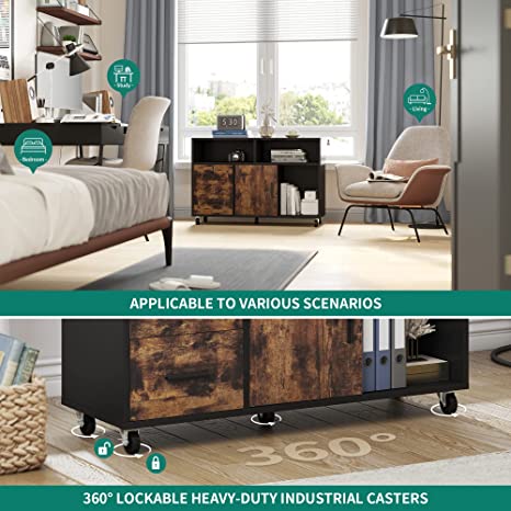 - EASY TO MOVE: Our storage cabinet on five 360° durable industrial casters can be moved freely without scratching the floor or carpet; 2 front wheels with brakes make it stably fixed beside or under desk, more space-saving and convenient to use!